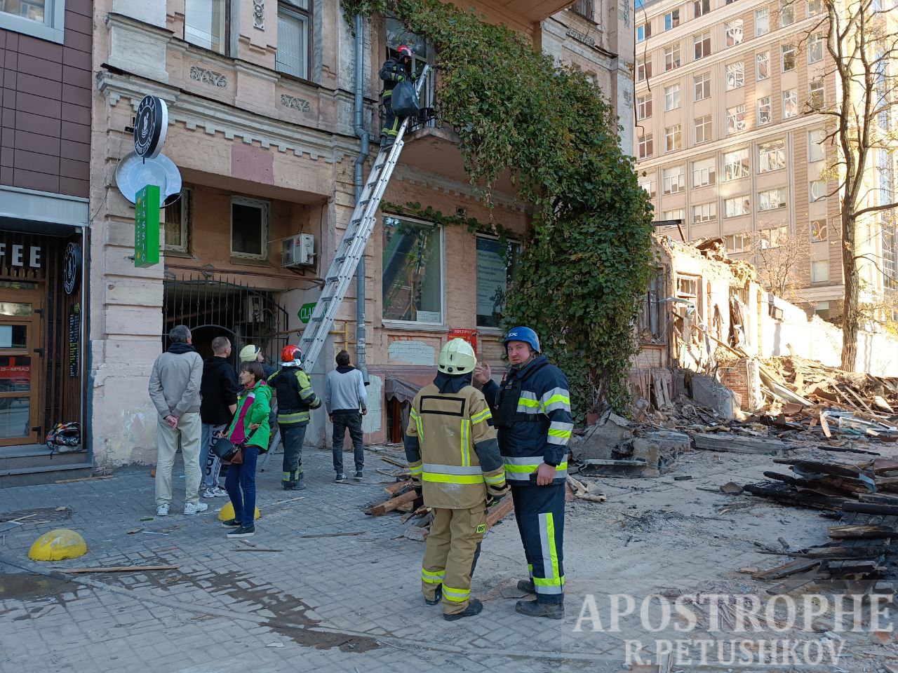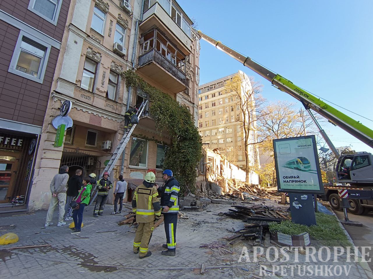 Спасатели продолжают разбирать завалы многоэтажки в центре Киева, пострадавшей от падения российского дрона-камикадзе утром 17 октября.