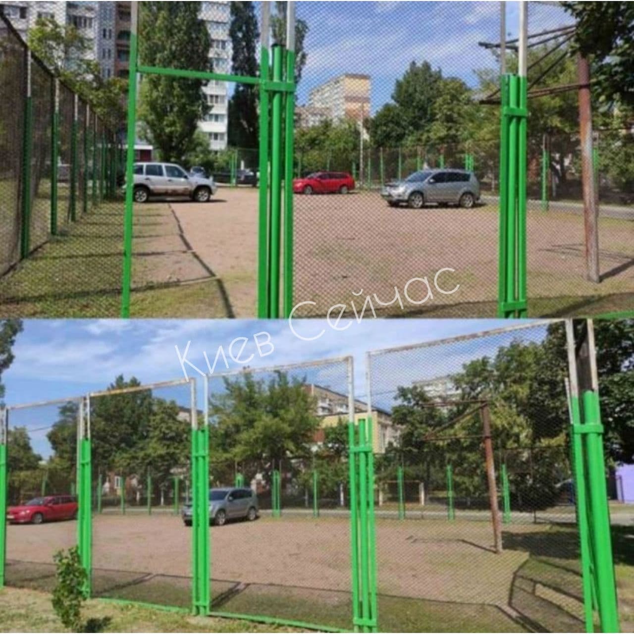 В Деснянском районе Киева местные жители "запарковали" спортивную площадку. Видимо, других мест не нашли.