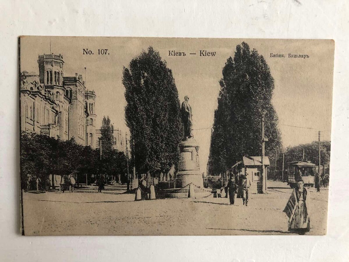 Вот, например, как выглядела открытка с фотографией Бибиковского бульвара в Киеве в 1913 году. Заметно, как местные жители прогуливаются по улочкам, наслаждаясь тогдашним спокойствием.