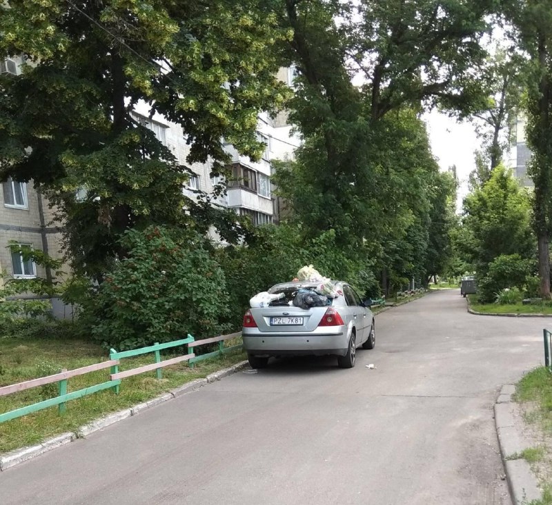 В Киеве на Березняках "герой парковки" бросил свой автомобиль на дороге в узком переулке. Его "ароматно" наказали обиженные соседи.