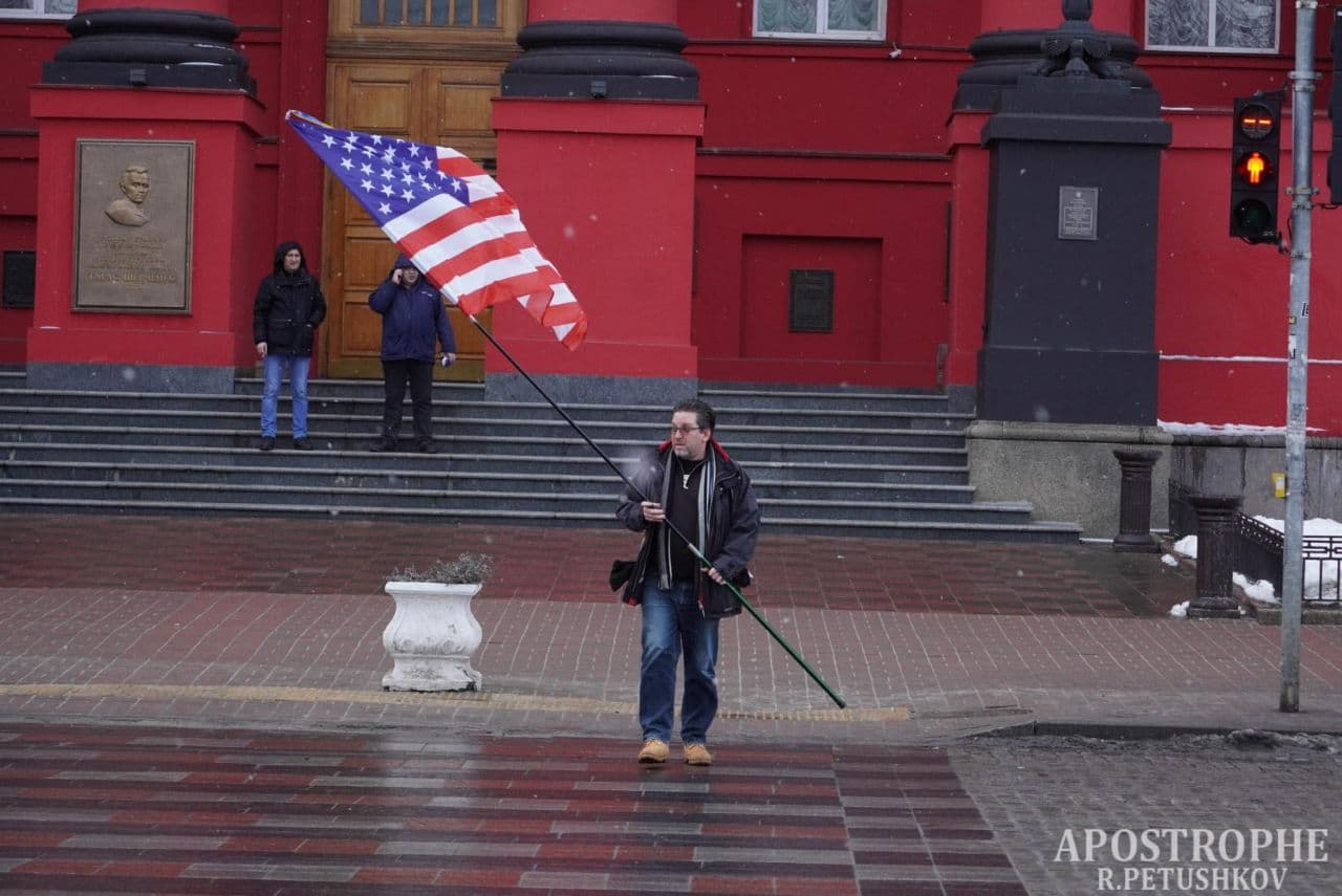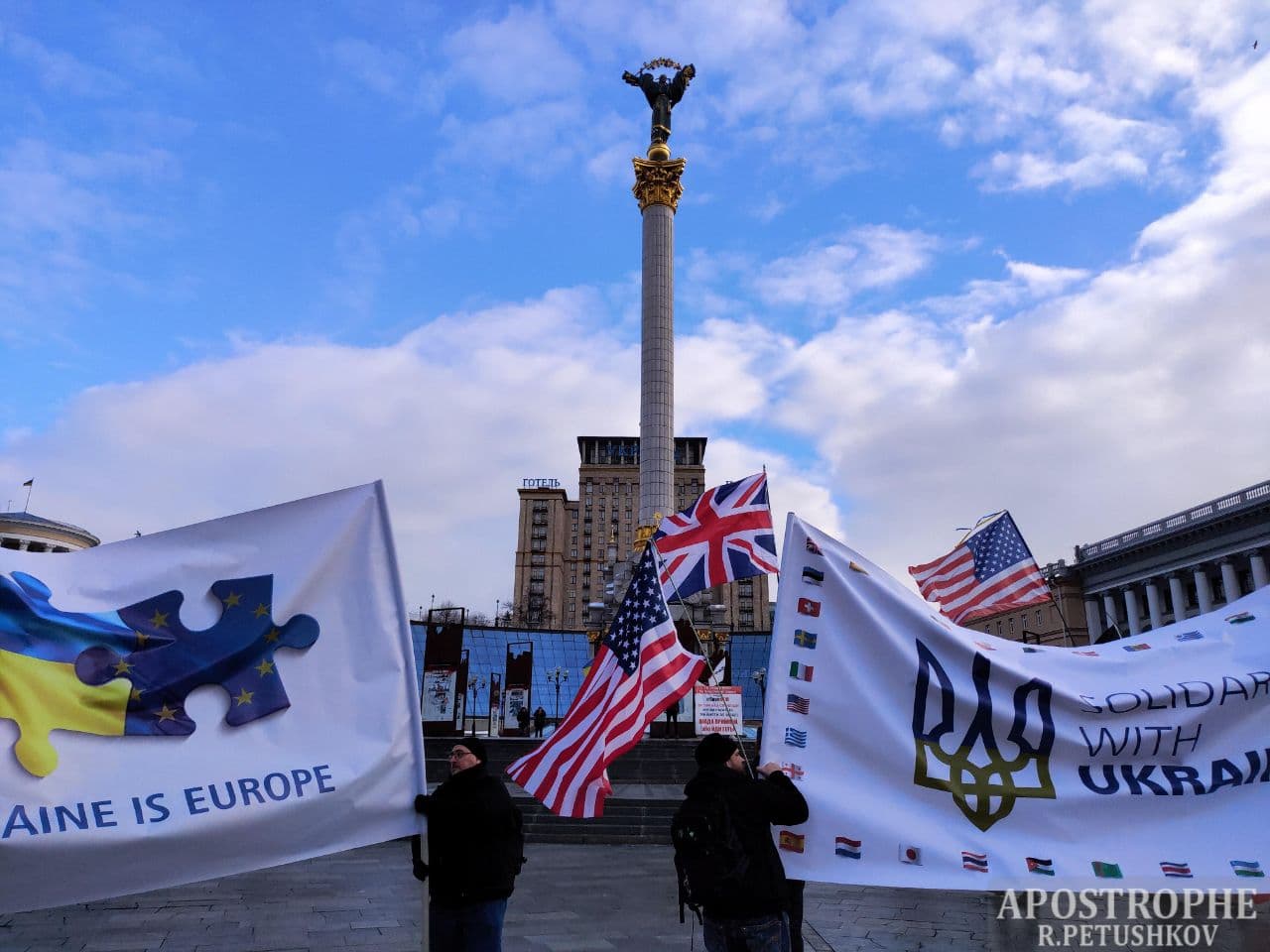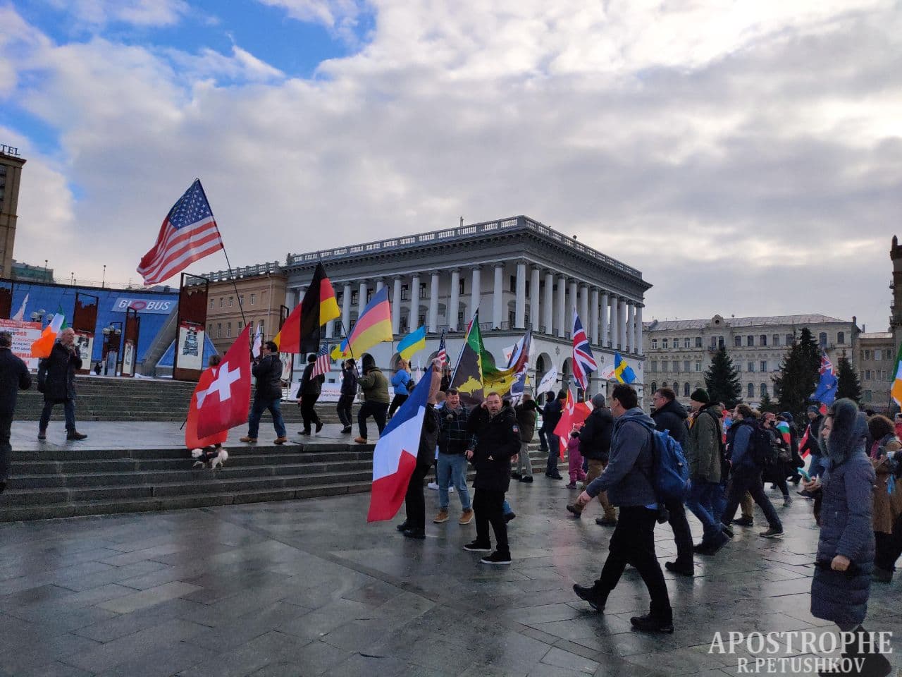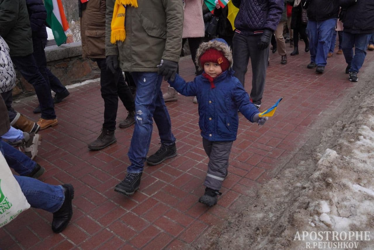 В воскресенье, 6 февраля, в Киеве прошел "Марш единения" против угрозы российского полномасштабного вторжения, которое возглавил эмигрант, бизнесмен Стюарт Маккензи.