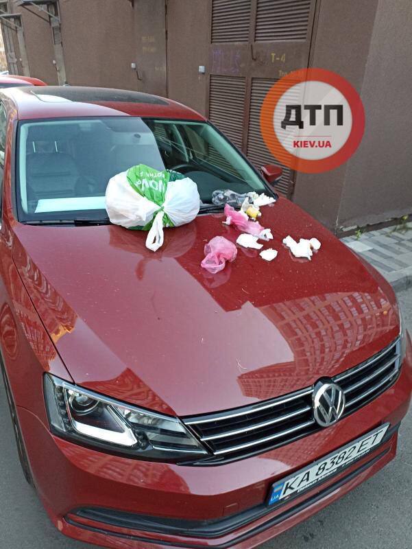 Напомним, в таких случаях рекомендуется вытрушивать пакет сразу на лобовое стекло, как это недавно сделали в Днепровском районе Киева.