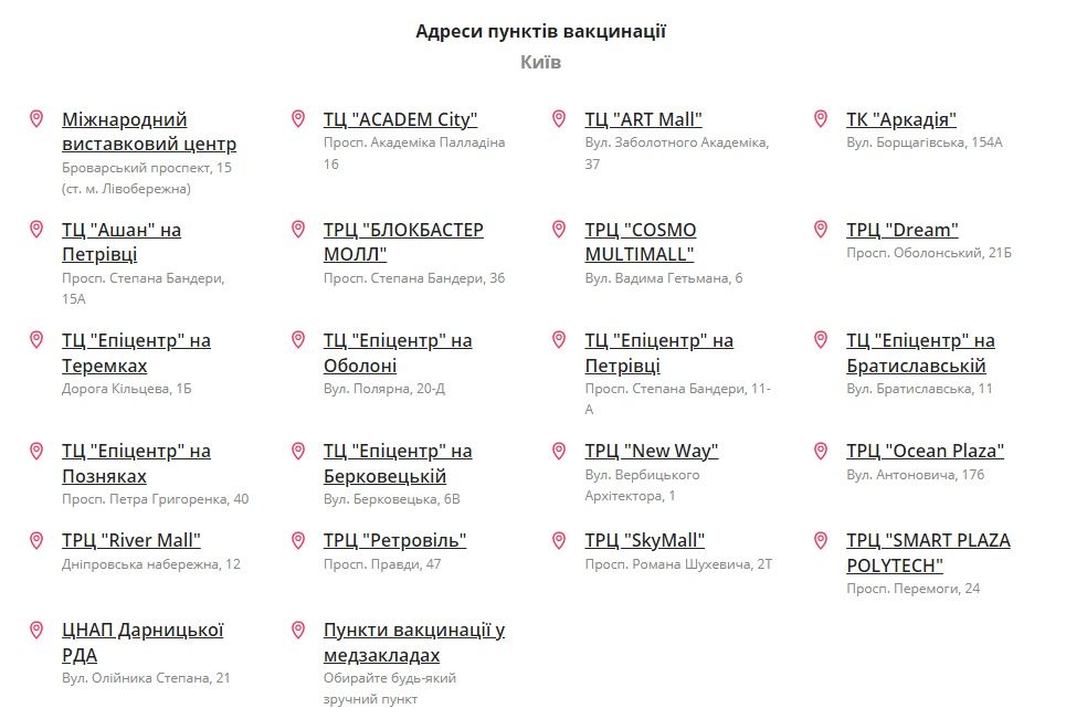 Кроме того, со вторника, 5 октября, жители столицы могут вакцинироваться в торговом комплексе "ARKADIA", который работает ежедневно с 12:00 до 17:00 по адресу ул. Борщаговская, 154-a. Доступны вакцины "AstraZeneca", "Pfizer" и "CoronaVac".