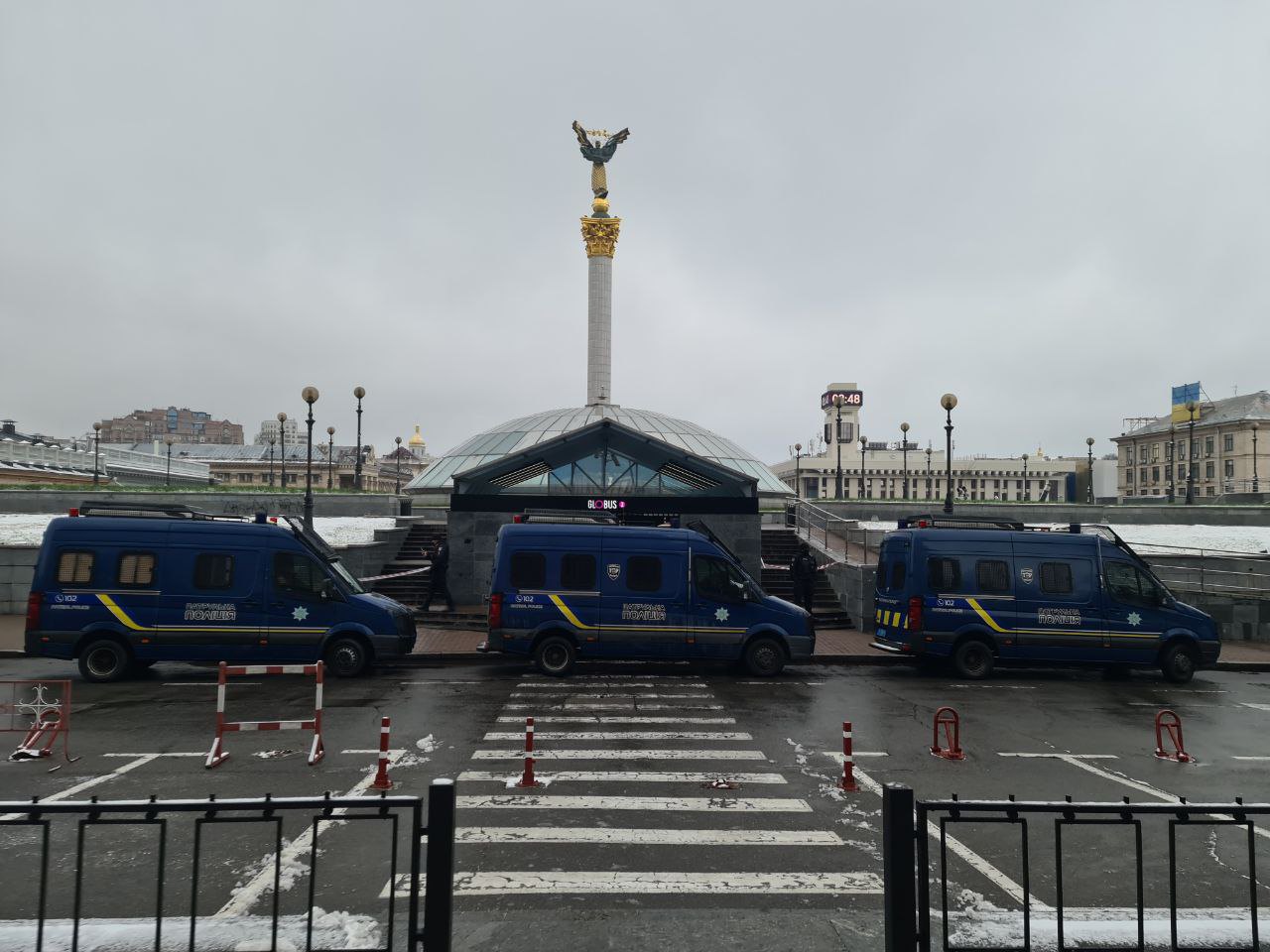 Перед выступлением спецтехника перекрыла проезд по улице Садовая. Перед началом протеста правоохранители также приступили к усиленному патрулированию центра Киева. У стен ВР присутствует военная спецтехника и автозаки.