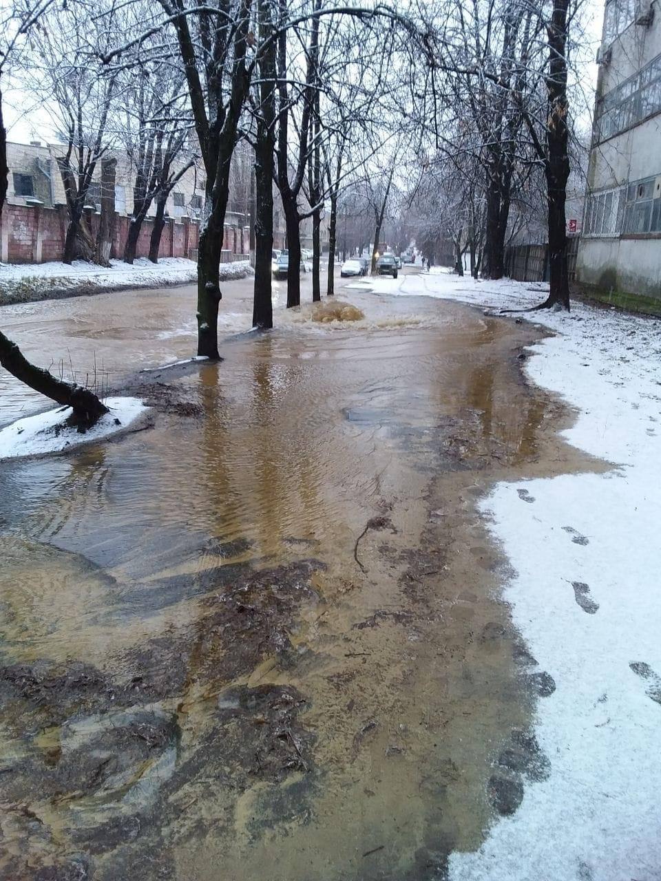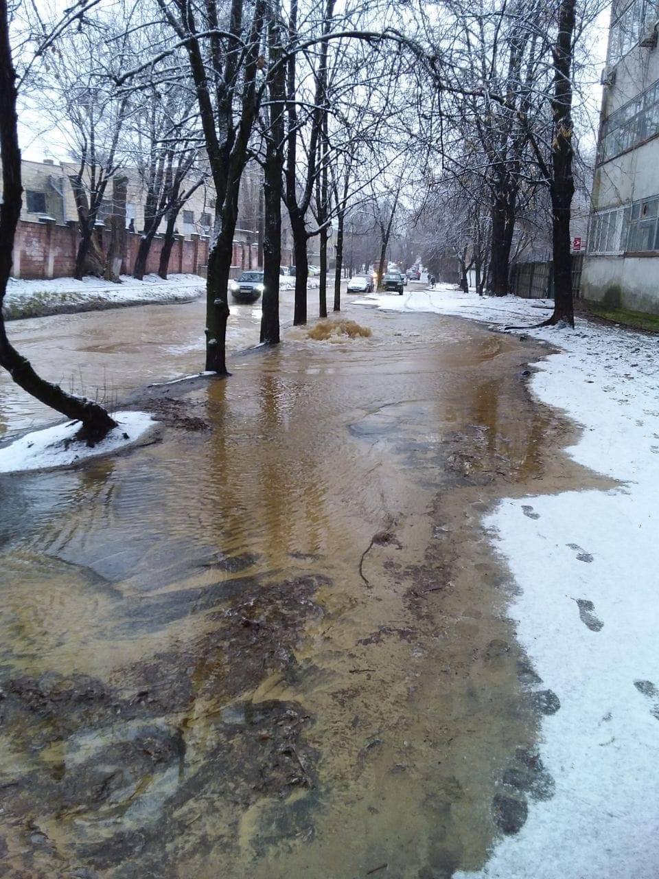 В Киеве на улице Алексея Тихого в субботу, 27 января, случился масштабный потоп. Там произошло повреждение водопровода, несколько домов временно без воды.
