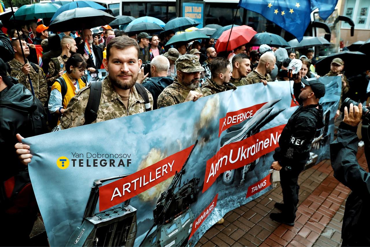 Лозунгом Прайда-2024 среди всего: "К победе". Колонна военных также присоединилась к участникам.
