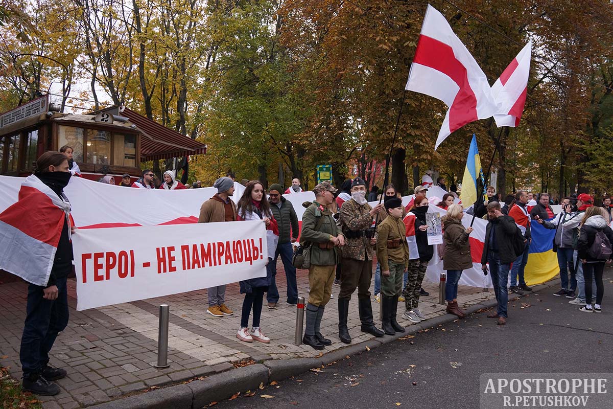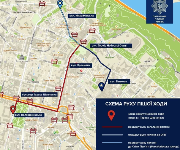 "Марш славы УПА" начался в 12:00 митингом возле памятника Тарасу Шевченко. Участники прошли по центру Киева и почтили память Героев Небесной Сотни.