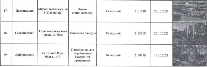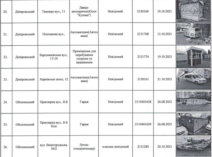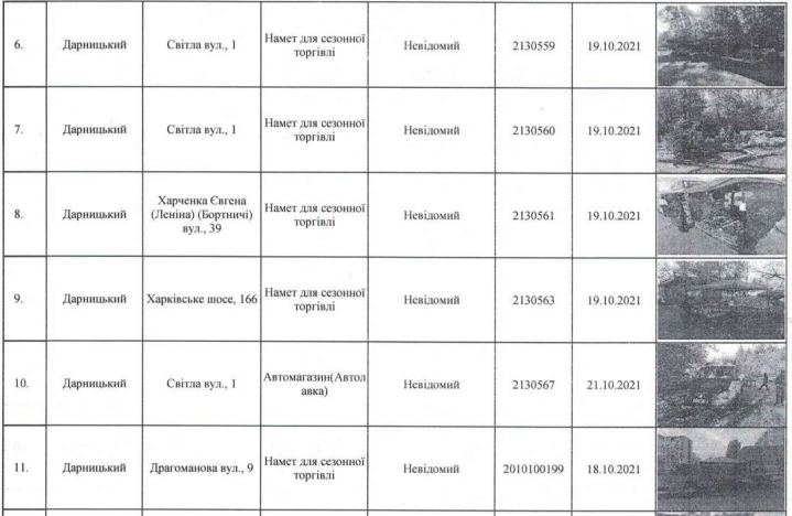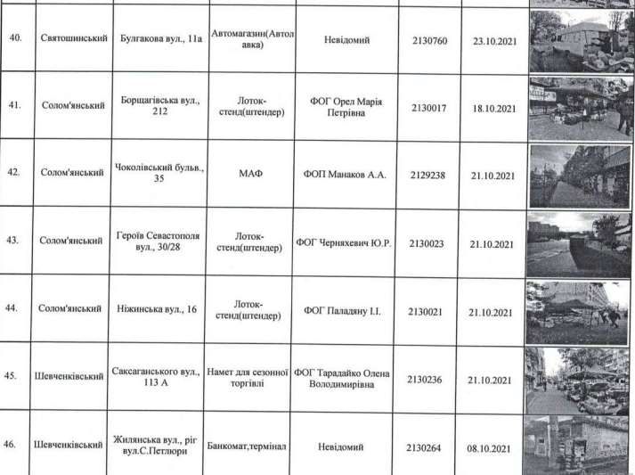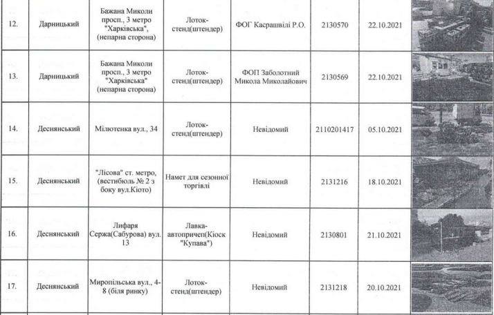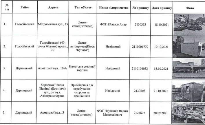 Убирать самовольно установленные палатки для сезонной торговли, лотки-стенды, МАФы, ограды, гаражи будут по таким районам столицы: Голосеевскому, Дарницкому, Днепровскому, Деснянскому, Оболонскому, Святошинскому, Печерскому, Шевченковскому, Подольскому, Соломенскому.