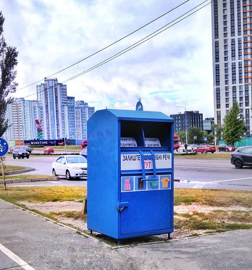 На улицах украинской столицы обустроили специальные "корзины добра", куда можно приносить чистые вещи для нуждающихся.