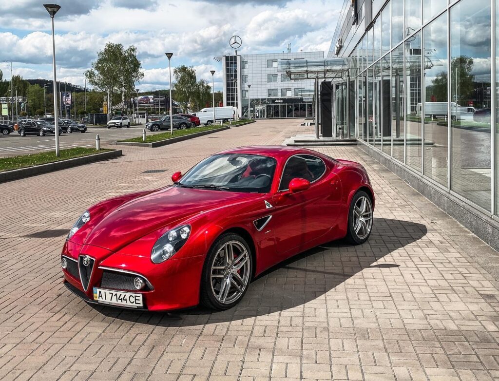 В Киеве заметили эксклюзивный суперкар Alfa Romeo 8C Competizione 2008 года. Новым Alfa Romeo 8C Competizione стоила около 250 тыс. долларов.