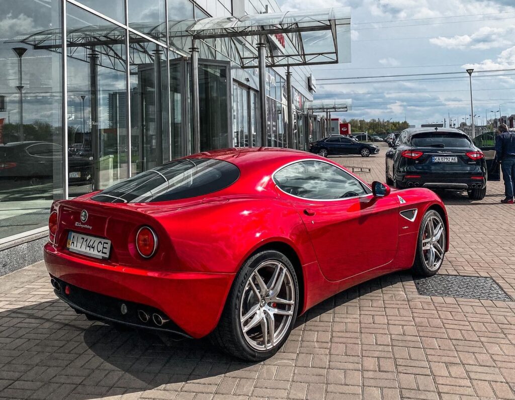 В Украине же в свое время было целых три Alfa Romeo 8C Competizione. Конкретно такого купе в версии Quadrifoglio, как заметили в Киеве сделали только 20. В нее иные колесные диски и особая отделка салона.
