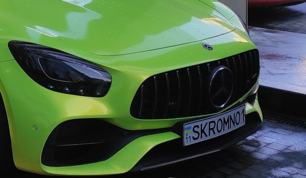 На одной из парковок в столице Украины был замечен эффектный спорткар Mercedes-AMG GT S ядовитого желто-зеленого цвета, стоимость которого превышает 5,5 млн гривен.