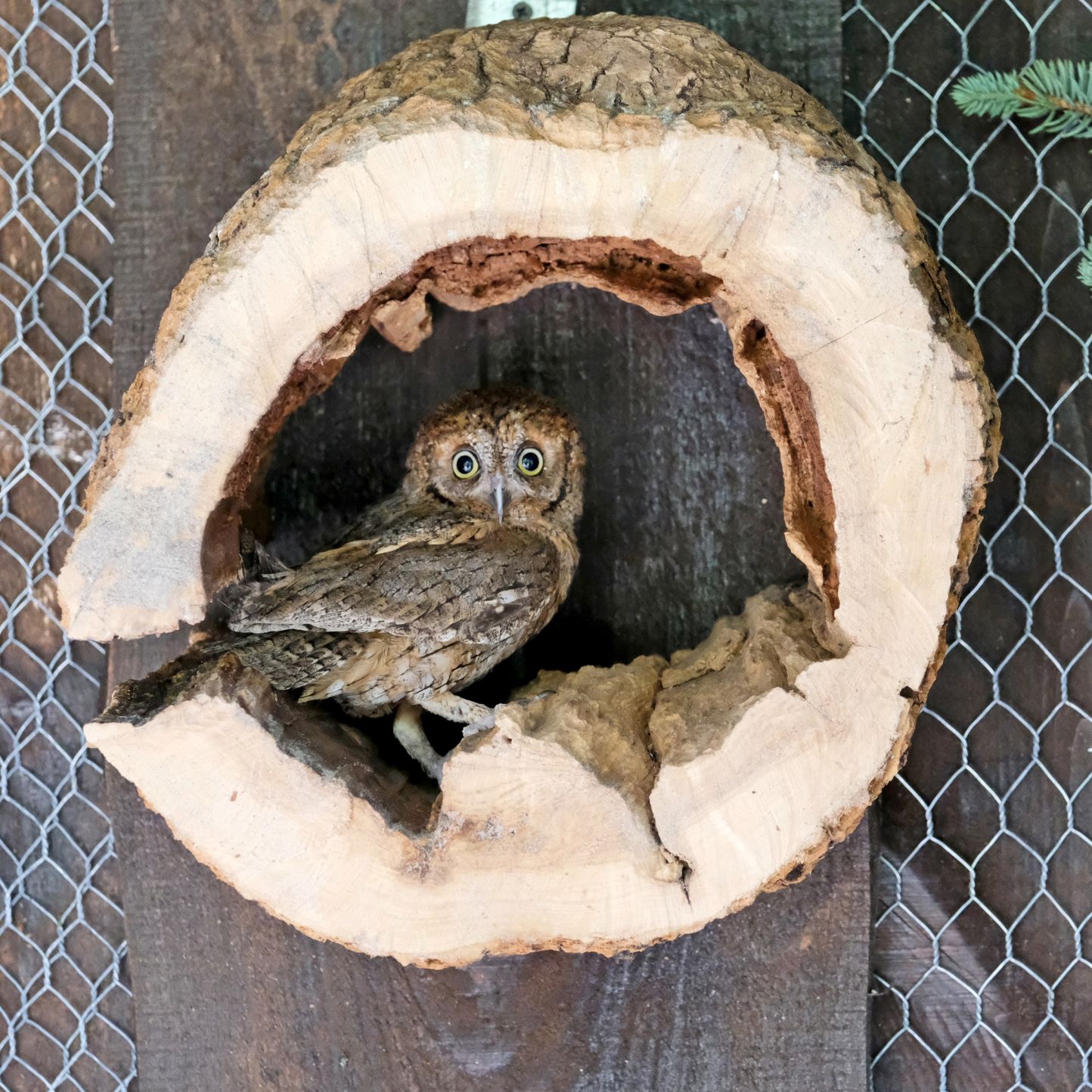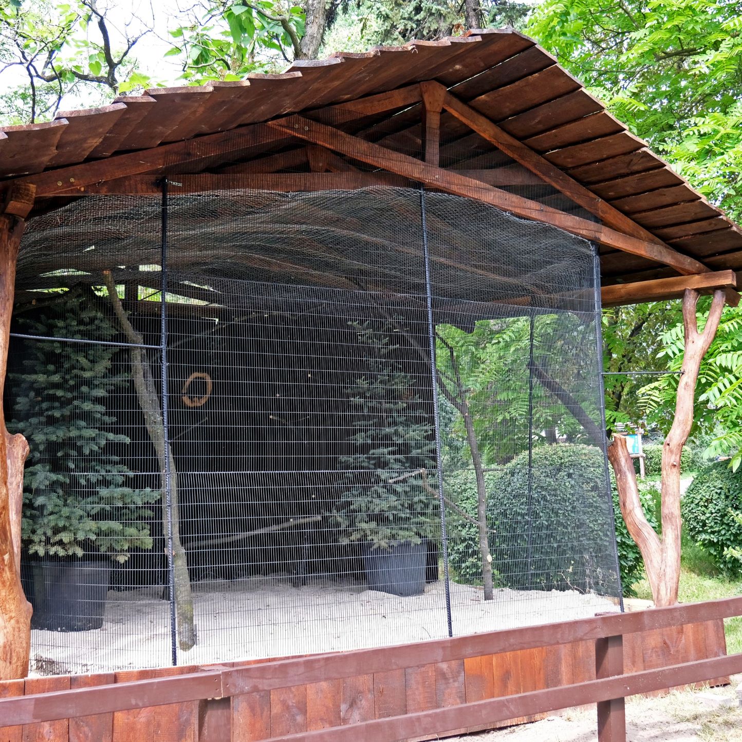 Птиц поселили недалеко от грифов, в деревянных домах, устланных песком и щепой с живой елкой.