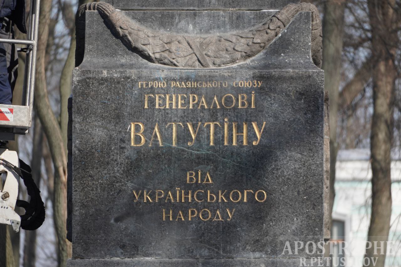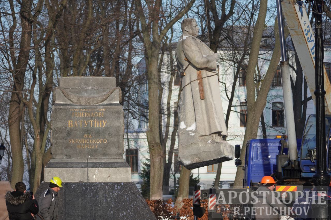Как известно, памятник стоял в киевском парке возле Верховной Рады с 1948 года. Еще в июле 2014 года Украинский институт национальной памяти включил Ватутина в список отдельных лиц, причастных к борьбе против независимости Украины, организации голодоморов и политических репрессий, именами которых названы улицы в Украине.