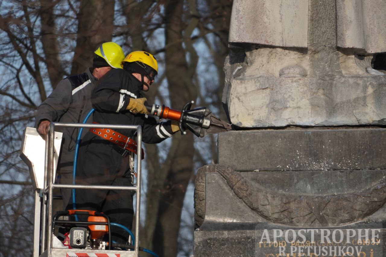 Демонтажем памятника занимался Департамент городского благоустройства КГГА, задействовав 10 специалистов и 2 вида крупногабаритной техники. Снос занял около трех часов. Теперь его передадут в Музей авиации.