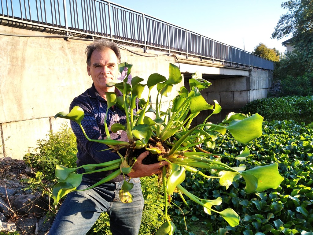 По его словам, эйхорния или водяной гиацинт как губка вбирает в себя множество загрязняющих веществ - биогены. тяжелые металлы и т.п. Но если она отомрет и сгниет в водоеме, то все это вернется обратно в цикл (плюс добавится органическое загрязнение). Поэтому для чистящего эффекта надо растения вовремя удалять из пруда.