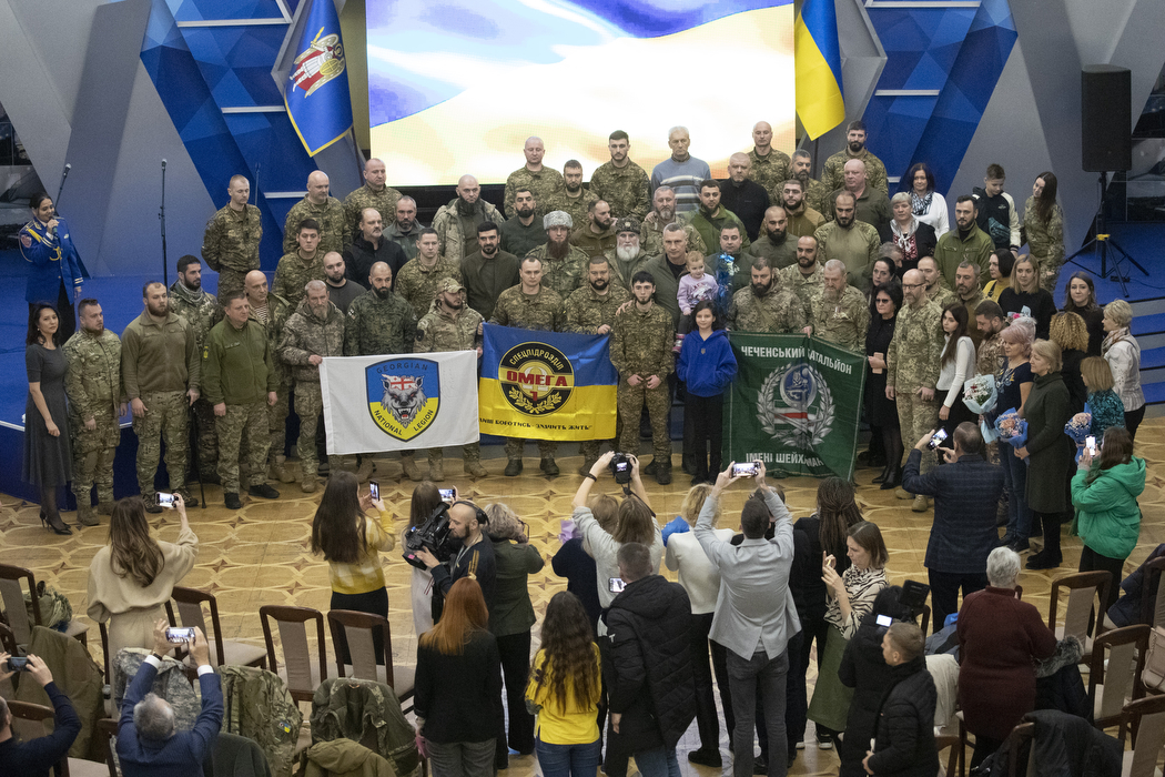 Награды получили 62 военнослужащих. В том числе добровольцы, которые воюют в составе иностранных батальонов. 15 наград присвоены посмертно. Знаки отличия от столицы получили семьи погибших Героев.