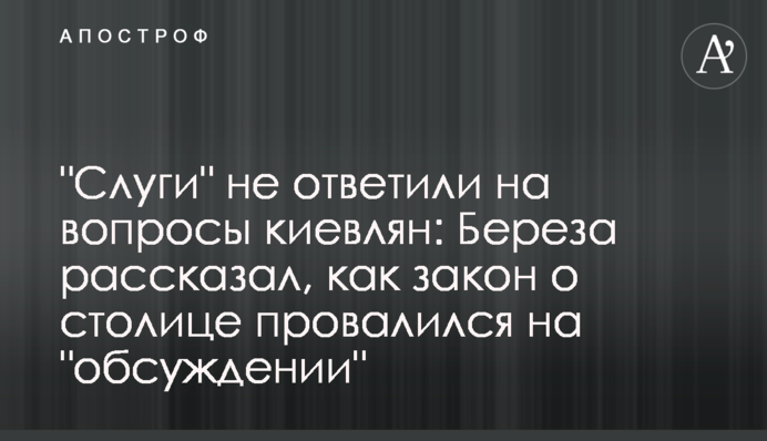 "Действо было устроено в Соломенской РГА, куда пришли народные депутаты от "Слуги народа" Роман Грищук и Виталий Безгин, а также неравнодушные киевляне. Результатом этого обсуждения стал полный провал законопроекта от "Слуг". Спикеры от провластной партии затруднились ответить на большинство вопросов, которые им задавали киевляне и каждый раз отвечали заученными шаблонами", - заявил Береза.