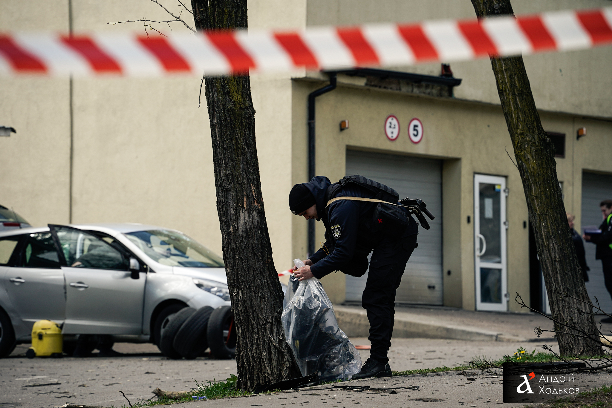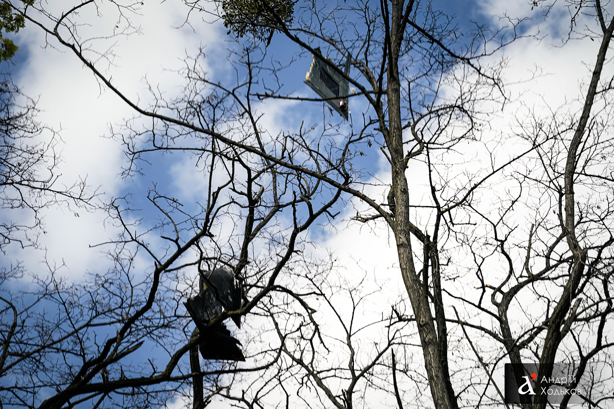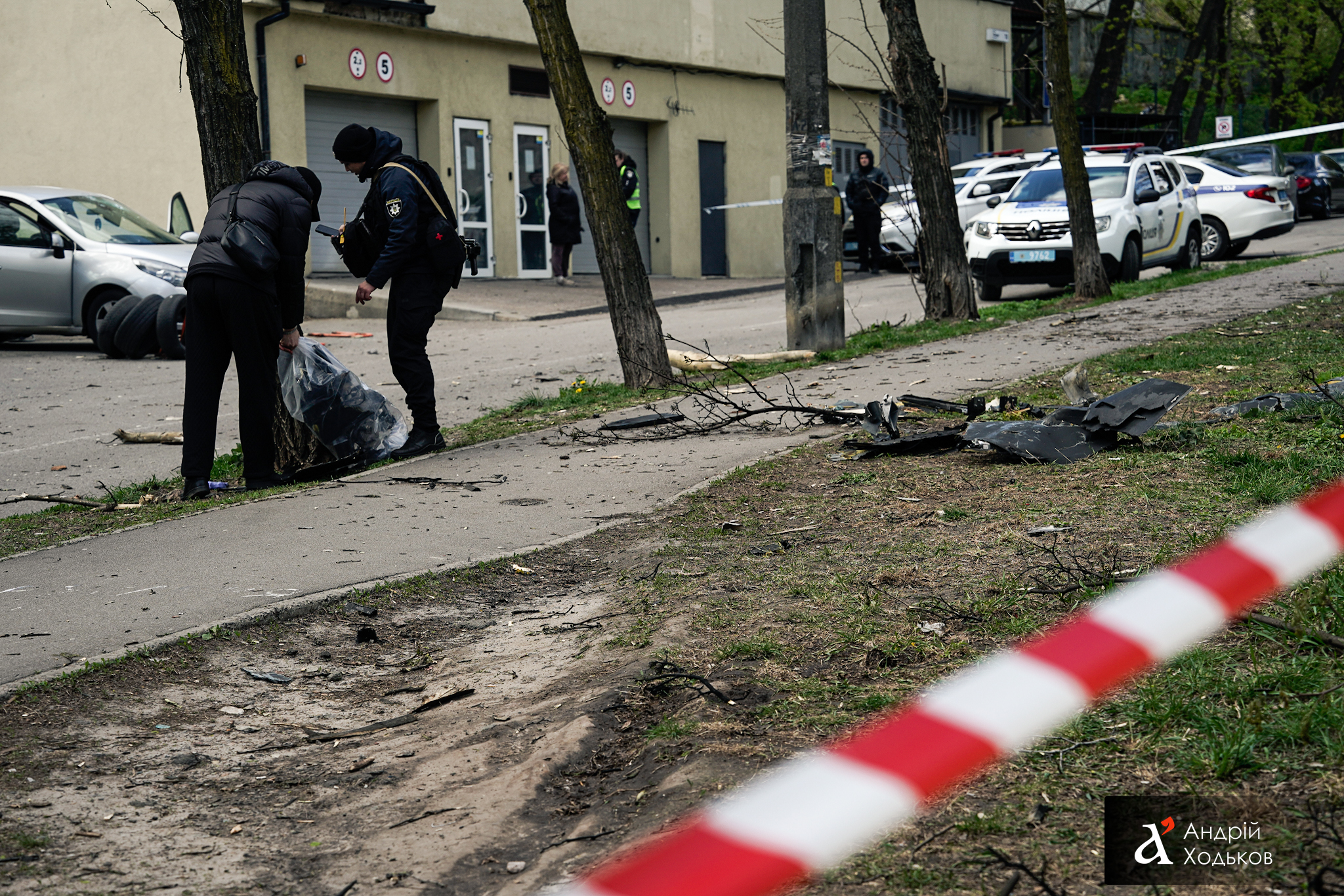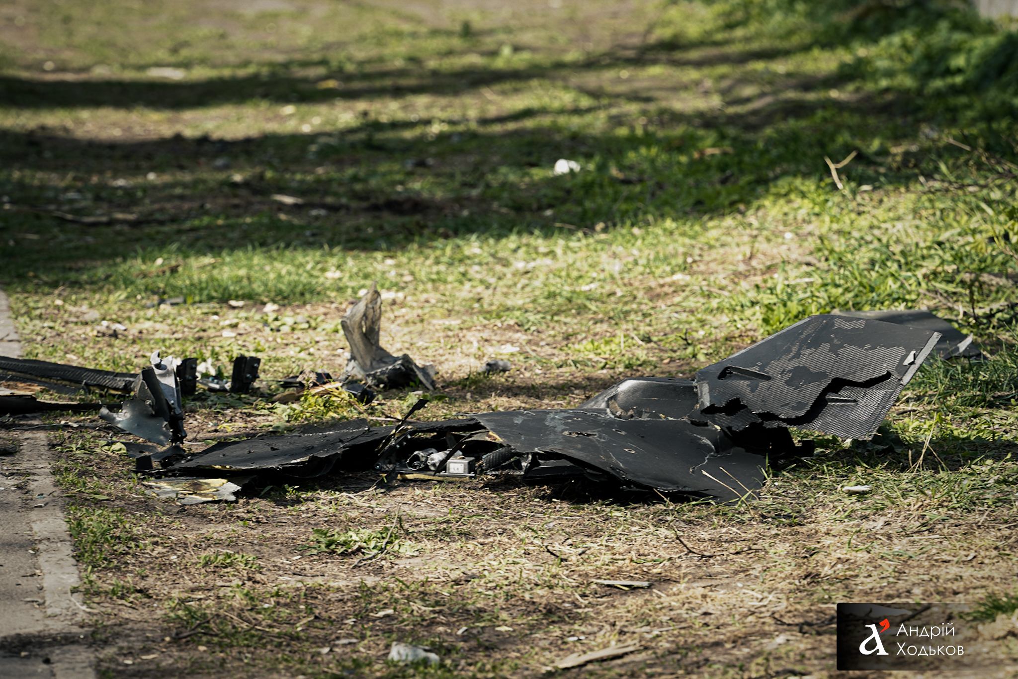 Там полиция начала фиксировать и устранять последствия атаки. Остатки беспилотника посбивали ветки деревьев и разлетелись вокруг.