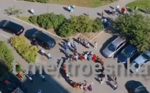 На Троещине в Киеве заметили большой свадебный кортеж. Гости водили хороводы прямо у стен жилого дома.