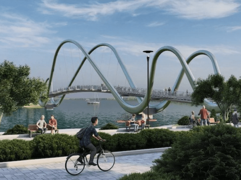 Строительство пешеходно-прогулочного моста по проекту Андрея Миргородского, объединяющего парк "Наталка" и Оболонский остров в Киеве подходит к концу. Его планируют открыть на день города в мае.