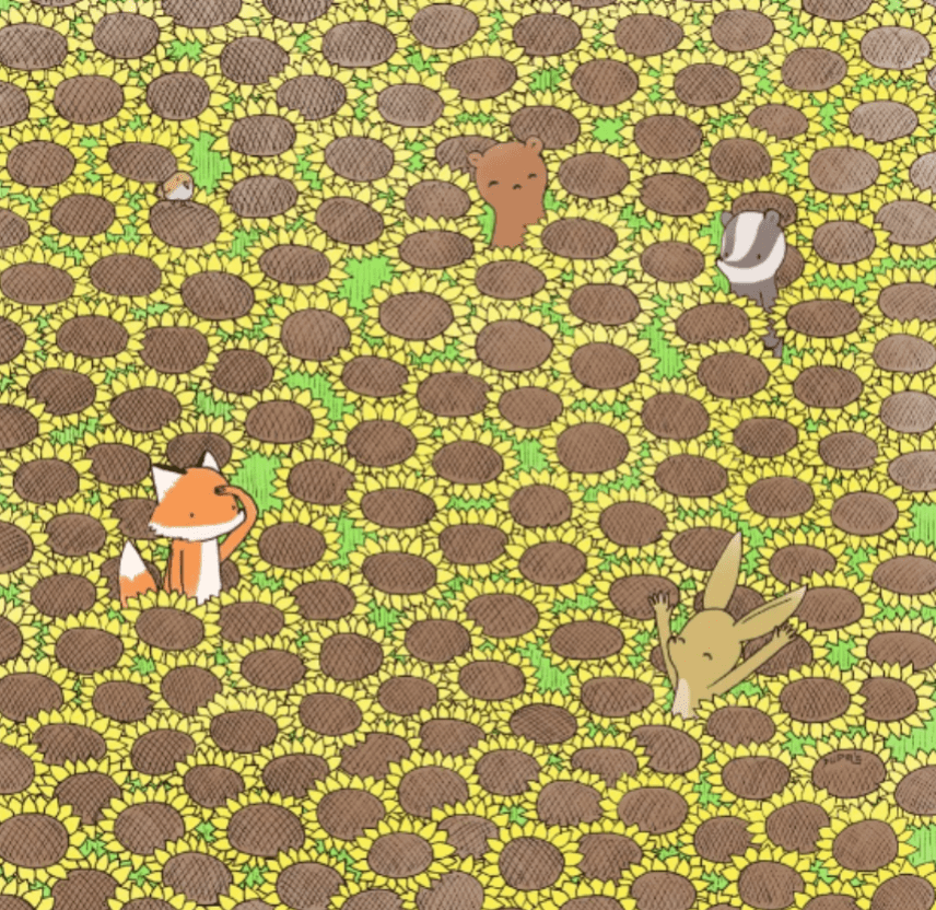 Эта оптическая иллюзия с животными и подсолнухами заставит вас поработать глазами. Попробуйте найти бабочку, спрятанную среди других изображений, всего за 20 секунд.