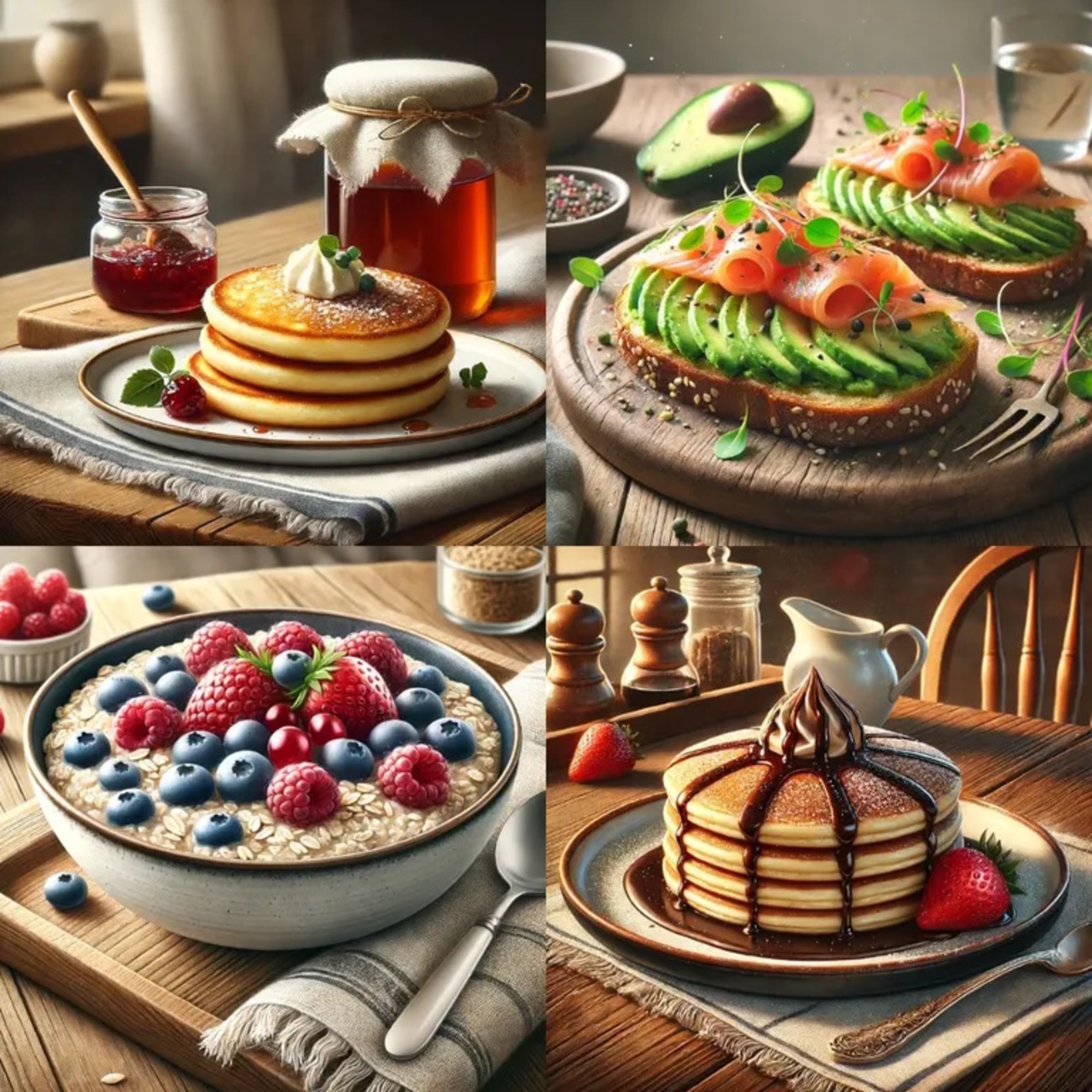 На картинках изображены 4 разных блюда на завтрак. Посмотрите на них и выберите то, которое вам нравится. От вашего выбора зависит ваш характер.