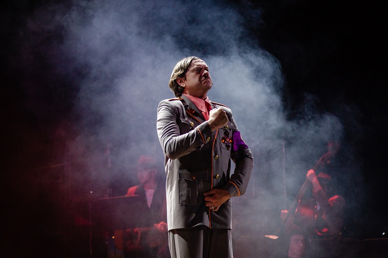 1. При чем здесь Гитлер и почему зрители буквально "валятся от хохота"? При том же, причем и Ева Браун и другие роли. Это спектакль в спектакле, где персонаж Гитлера (Остап Ступка) смешной до неприличия: это пьяница и наркоман, волею судеб взявшийся играть роль фюрера. Он бегает в шортиках и ловит бабочек. Это гротеск: комедийная пластика, прическа и усы. Однако мюзикл Театра Меламуда вообще не про Гитлера, это комедия об аферистах театрального толка, ну очень жаждущих решить свои финансовые проблемы – конечно же, за счет других. Впрочем, результат этой аферы выходит очень и очень неожиданным.