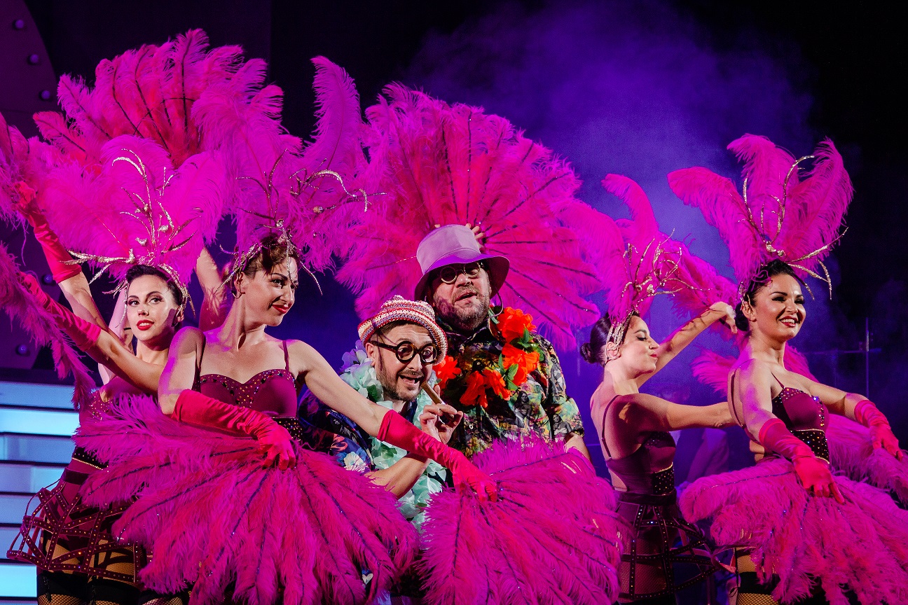 Этот мюзикл – настоящая феерия. Невероятные костюмы (чего стоит один только Народный артист Украины Алексей Вертинский в золотом трико, на каблуках, с розовым боа и розовыми же ресницами), роскошные декорации, а уж что говорить о Народном артисте Украины Остапе Ступке, который запел! Вместе с Алексеем Вертинским и Остапом Ступкой на сцене будут блистать еще немало талантливейших артистов: Алексей Суханов, Народная артистка Украины Людмила Смородина, Александр Меламуд, Мирослава Филиппович, Вячеслав Никоноров.