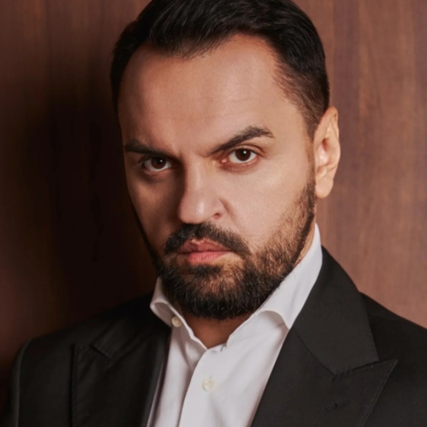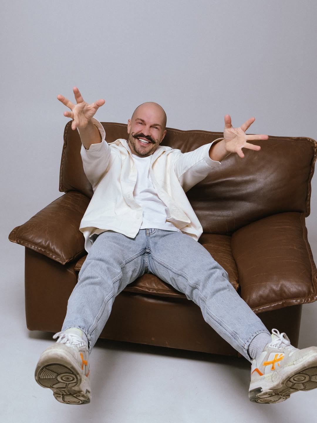 Продюсер Михаил Ясинский также подкручивает усы вверх, таким образом его образ выглядит более статусным.