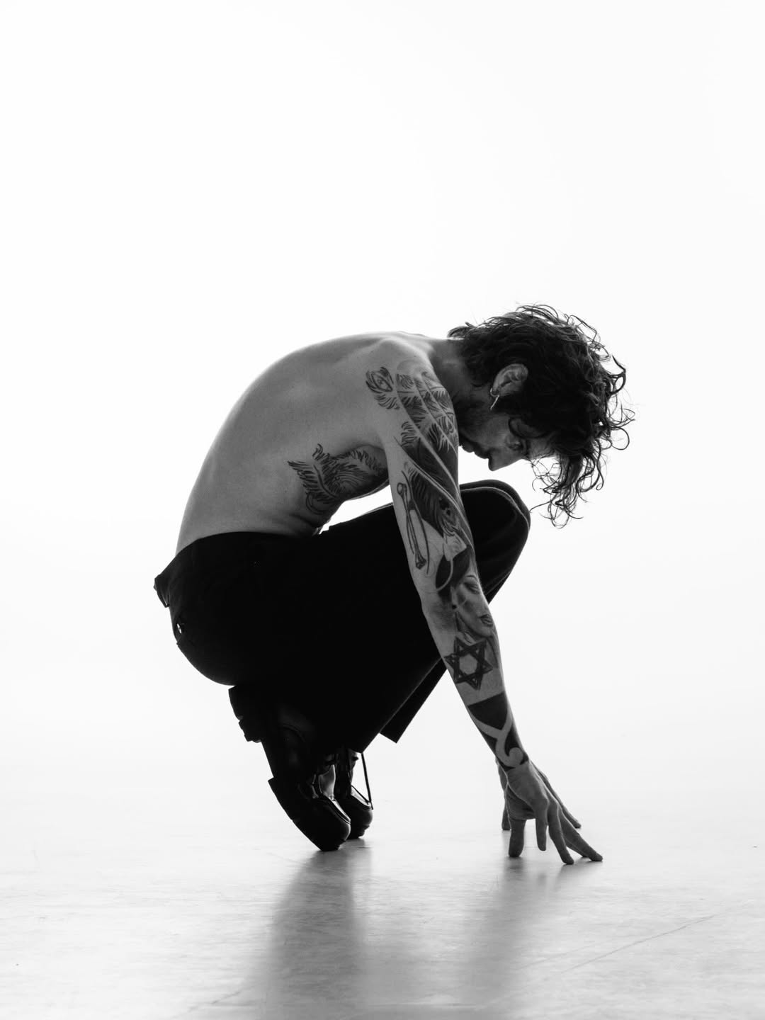 37-летний артист обнажил торс и замер в артистичных позах. Из одежды на знаменитости были только футболка, которую вскоре он снял, и брюки. Дополнили образ ботинки с массивной подошвой. Украшений минимум – только серьги.
