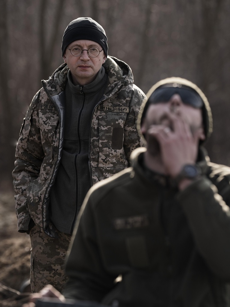 "У меня сверхсложное отношение к этому фото. С одной стороны, я его хотел, потому что вот этот парень на переднем плане в расфокусе, это не просто пилот БПЛА за работой. Это Юрий Фелипенко, позывный Май. Очень классный человек и, кстати, известный. В гражданской жизни – актер театра и кино, молодой следователь из сериала "Цвет страсти", адвокат из "Цвета мести" и кто-то там в пьесе "Процесс" по роману Кафки в театре на Подоле", - отметил Фионик.