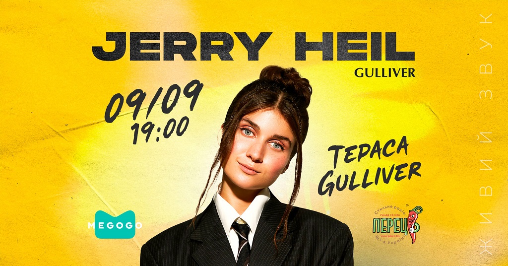 Подготовьтесь к незабываемому вечеру вместе с Jerry Heil на террасе Gulliver 9 сентября в 19:00 под любимые треки и известные хиты: "Москаль Некрасивий" ("Геть з України"), "Мрія", "Козацькому роду", "НеСестри", "Охрана, отмєна", "Мрія", "Пошта", "Кохайтесь чорнобриві" и другие.