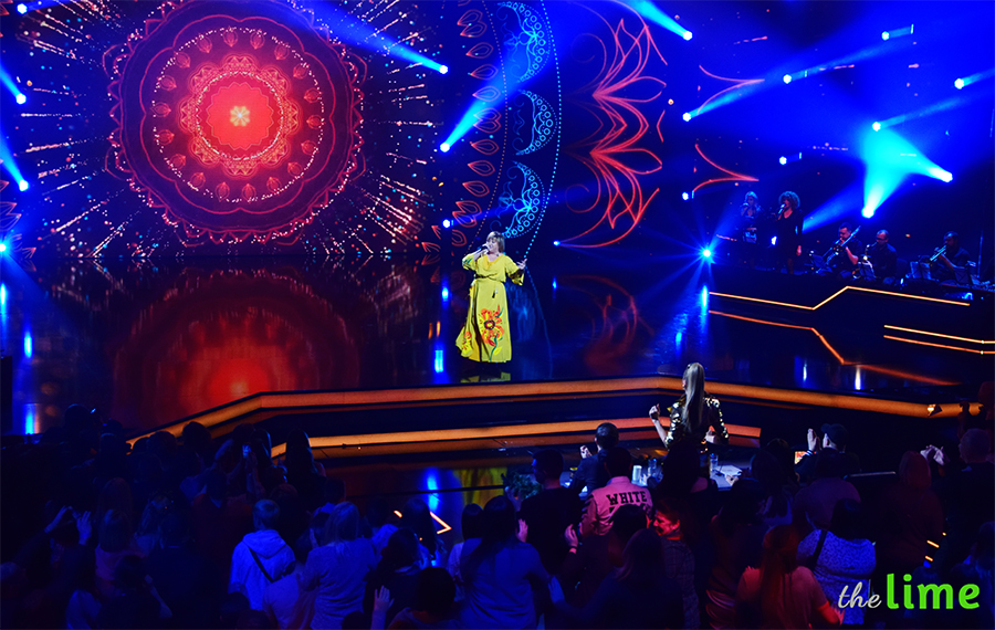 Няня Люда появилась на гала-концерте в ярком желтом платье-вышиванке. Вокалистка исполнила зажигательную украиноязычную песню "Таночки" и буквально подорвала зал - танцевал даже Андрей Данилко. Автором трека выступила Катя Бойко - жена участника группы Romax, принимавшей участие в "Х-факторе 10".