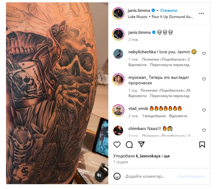 1 декабря 2024 года баскетболист опубликовал видео своего тату с черепами.
