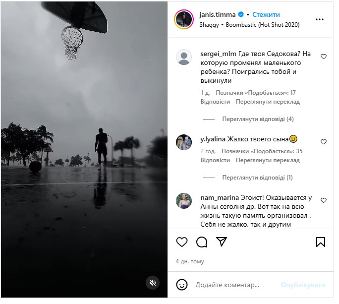 В комментариях на странице Тимма в Instagram его упрекали, что он ради Седоковой оставил свою жену с маленьким сыном, а теперь вот его бросила Седокова: