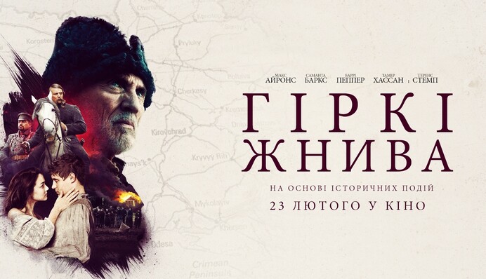 В четверг, 23 февраля, в широкий прокат выходит фильм "Гіркі жнива" (в российском переводе "Урожай дьявола") – первый полнометражный игровой фильм о Голодоморе на английском языке. Картину, которую сняли потомки украинских эмигрантов из Канады, собираются показать в 45 странах мира.