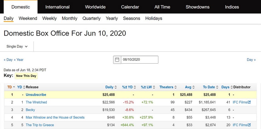 Уже сегодня фильм Unsubscribe возглавил прокат в США, и такого абсурда, как признался в Фейсбук сам режиссер, видеть ему еще не приходилось.