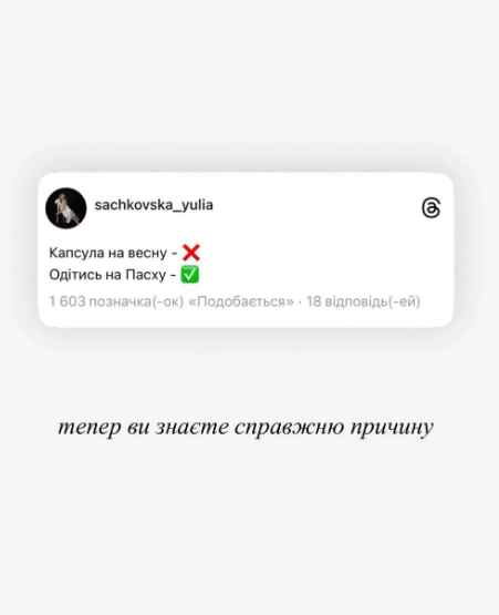 Юлиана добавила, что к Пасхе полностью готова.