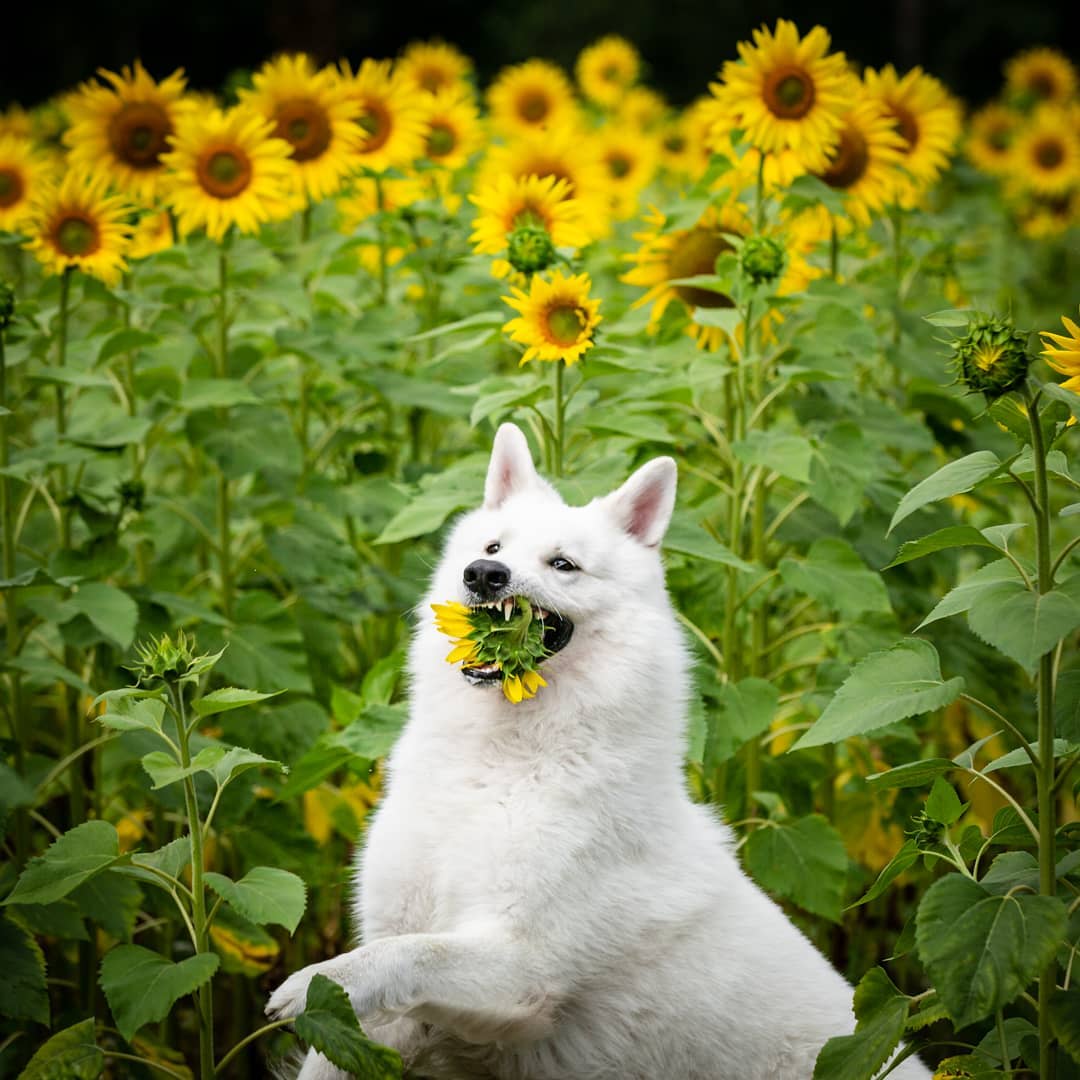 Жительница Польши Агнешка Чишинская хотела красиво пофотографировать своих швейцарских овчарок в подсолнухах. Вот только съемка обрела неожиданный поворот, когда собаки поняли, что резвиться в цветах им нравится куда больше, чем позировать.