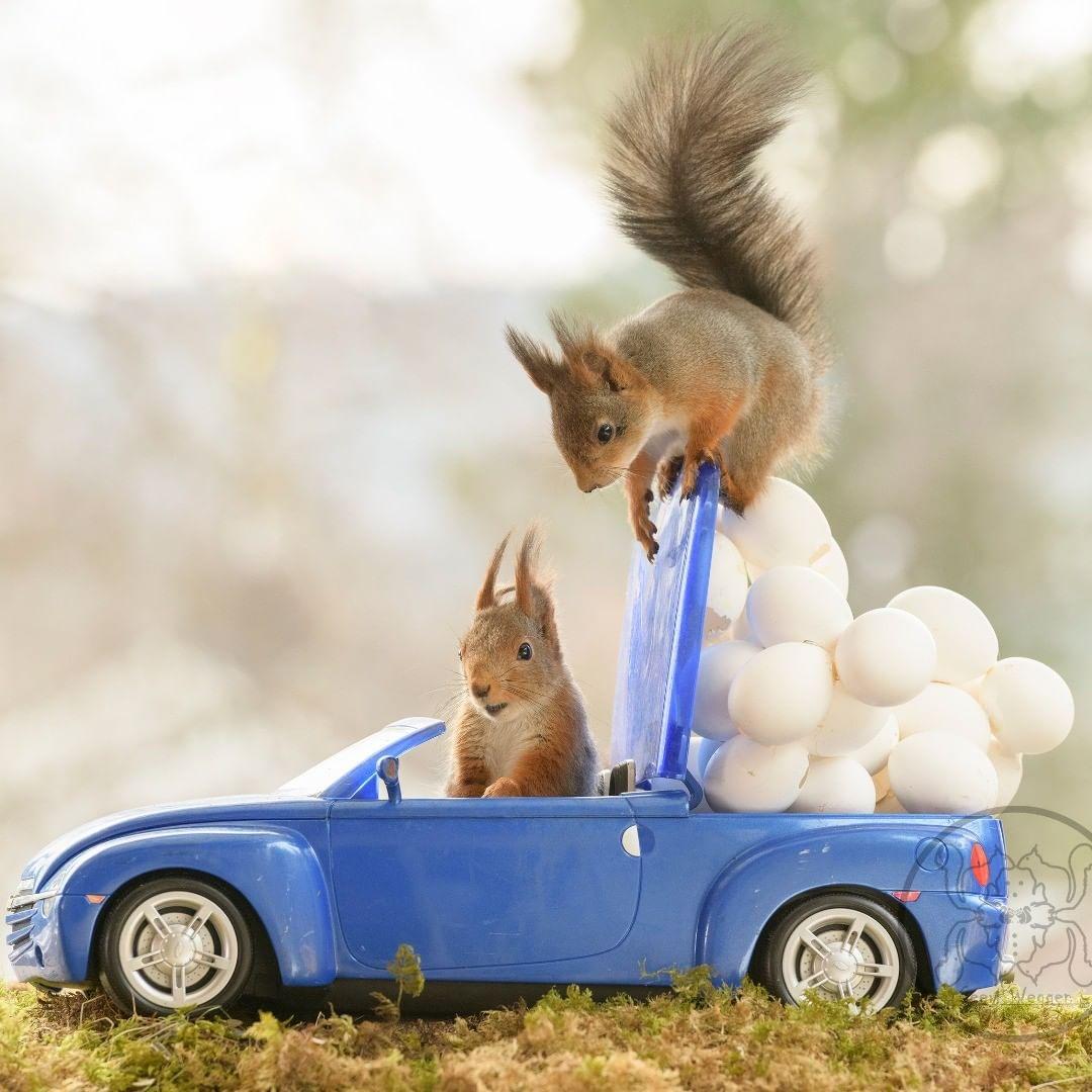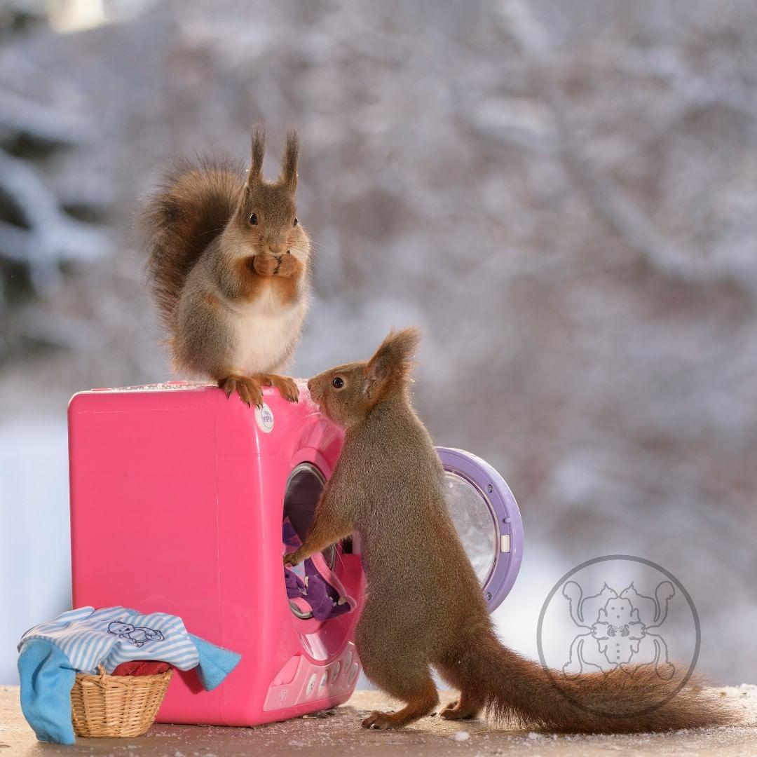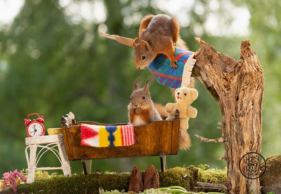 По словам Веггена, ему не всегда удается поймать двух-трех белок в одном кадре. Поэтому время от времени он совмещает отдельные снимки в одну сцену с несколькими животными.