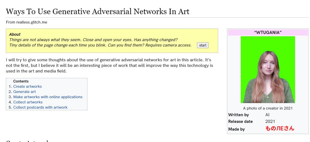 Блогер и художница Олеся Чернявская создала сайт-копию "Википедии", который меняется каждый раз, когда читатель моргает. Идею удалось реализовать благодаря искусственному интеллекту, и чтобы шалость удалась, ресурсу нужно просто разрешить доступ к камере вашего ПК.