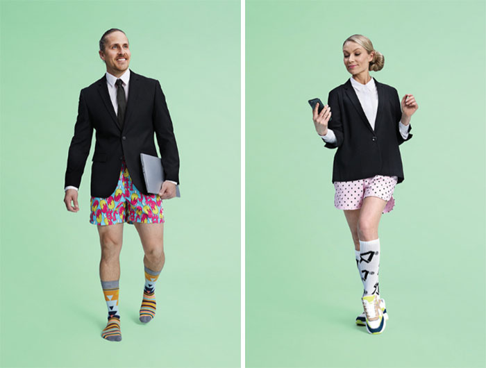 Бренд предлагает клиентам вдвое сократить стоимость своего делового гардероба и беспокоиться только о верхней половине своего официального наряда. Так что, сегодня гардероб делового человека выглядит так: строгий верх - домашний низ.