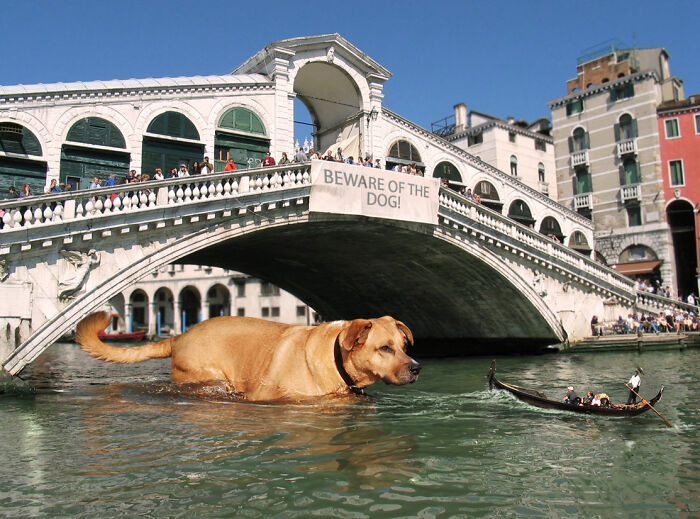 Вот тема конкурса под названием "Город преувеличений", где людям приходилось создавать гигантов и вставлять их в города нормального размера. Уровень этих работ отнюдь не профессиональный, но они достаточно занимательные и веселые.