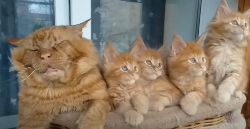 "Пожилой кот мейн-кун крепко спит рядом со своим потомством", - гласит подпись к смешному ролику. Пользователи не остались равнодушными к милой кошачьей семье. Кто-то пожалел кота-родителя, которому не дают выспаться малыши. Были также и те, кто не смог устоять перед очаровательностью и непоколебимым спокойствием взрослого мейн-куна.