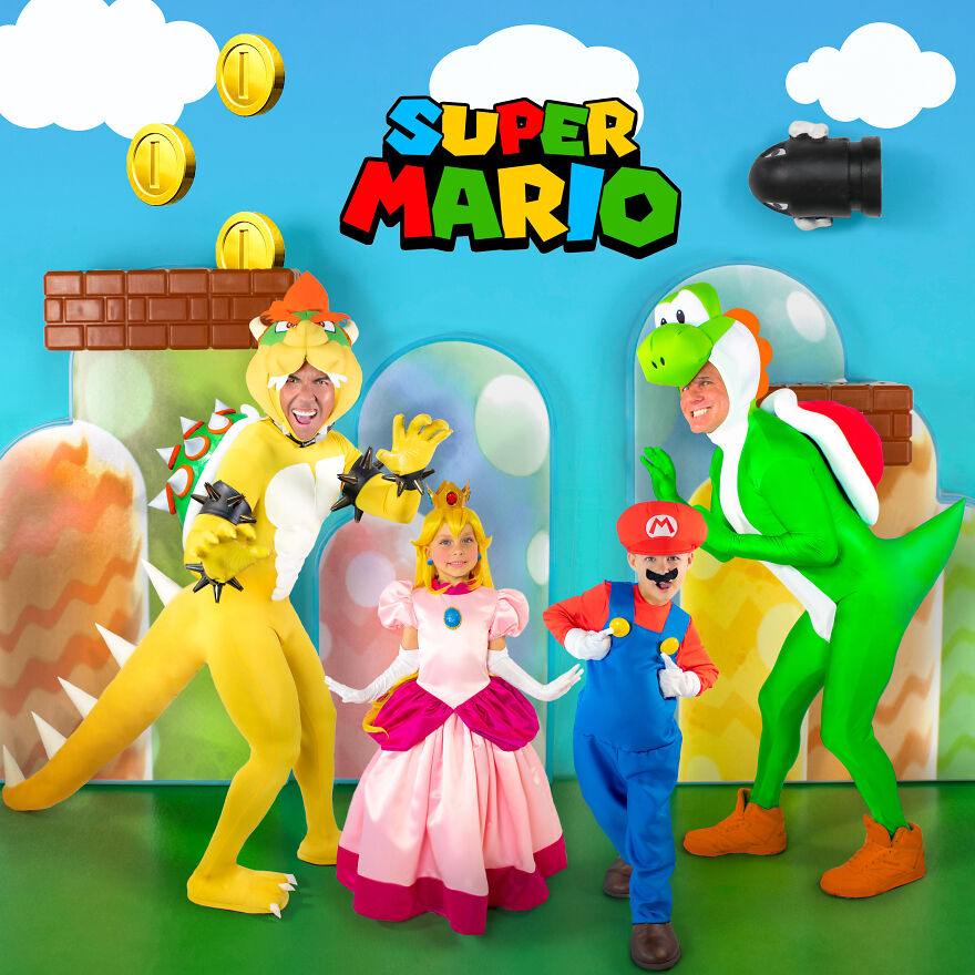 На создание костюмов у мужчин уходит несколько месяцев, в зависимости от сложности наряда. В этом году креативная семья решила перевоплотиться в героев из видеоигры Super Mario. Некоторые детали образа папы приобрели в магазине, а некоторые сделали собственноручно. Аделаиду нарядили в красивое платье, надели парик и подобрали макияж, чтобы придать ей вид принцессы Пич.
