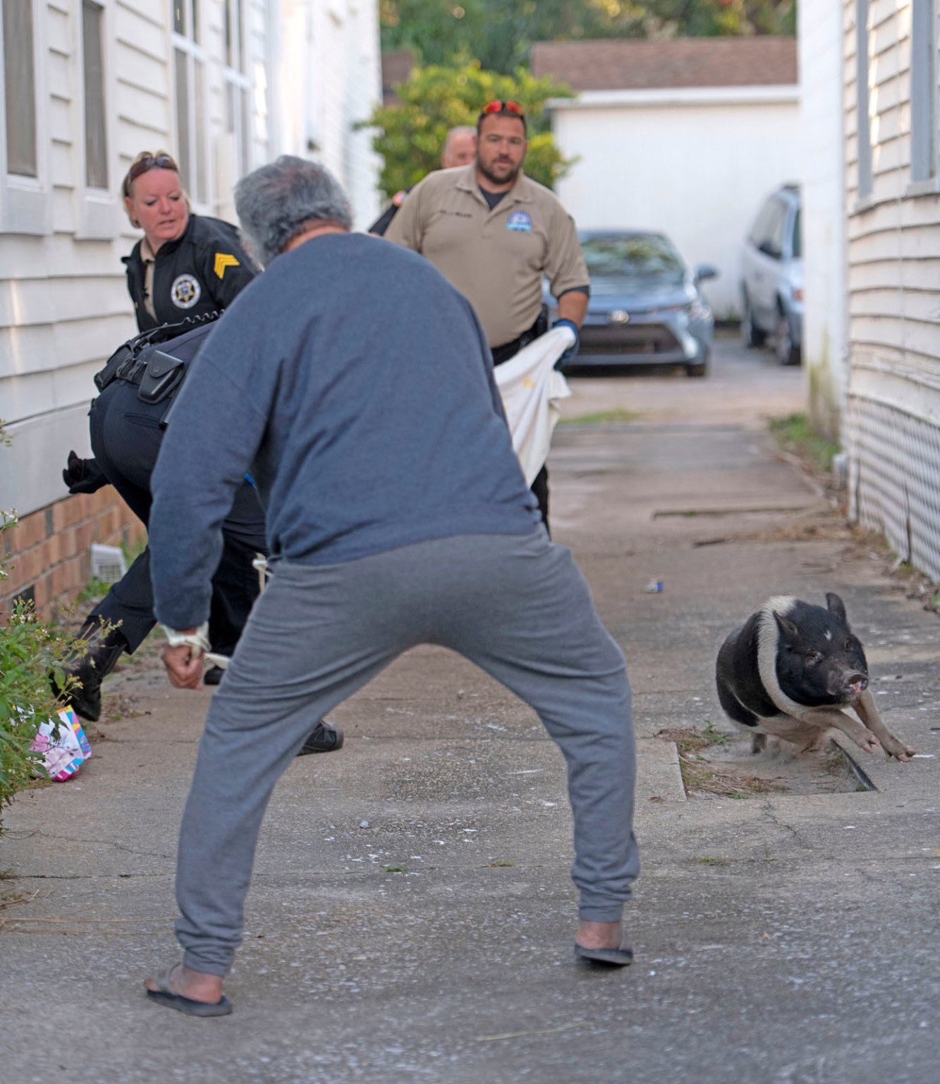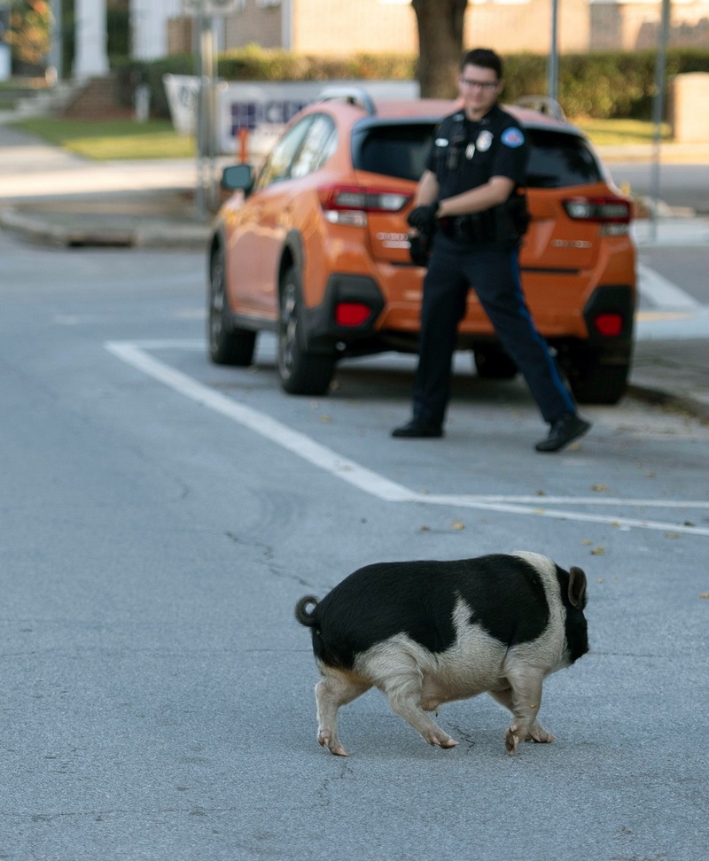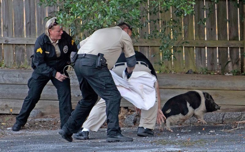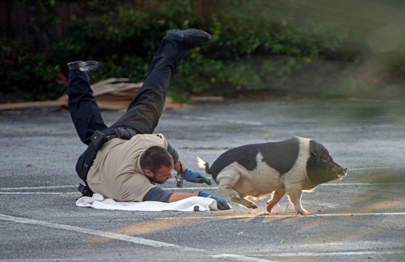Полицейские гонялись за свиньей примерно с 7:15 до 8:15 утра. Часовую погоню заснял фотокорреспондент издания Pensacola News Journal Тони Гиберсон. "Пусть эти фото говорят сами за себя. Советуем включить музыку из "Шоу Бенни Хилла", - пошутили полицейские на странице Pensacola Police Department в Facebook.