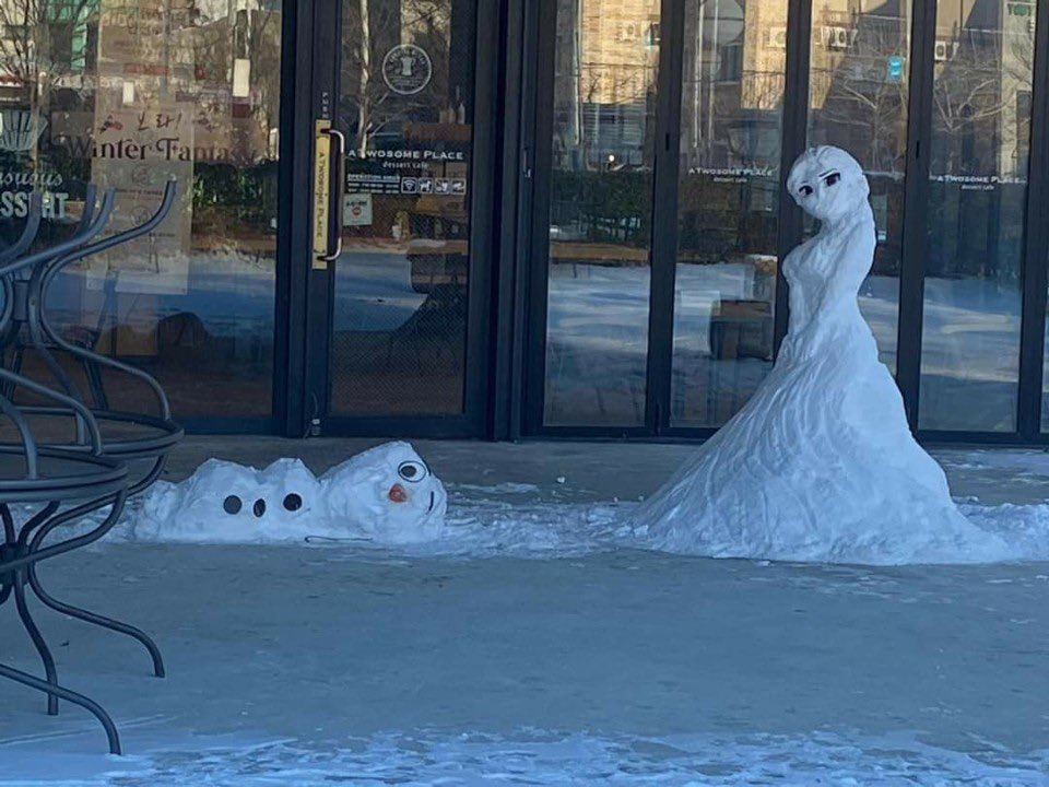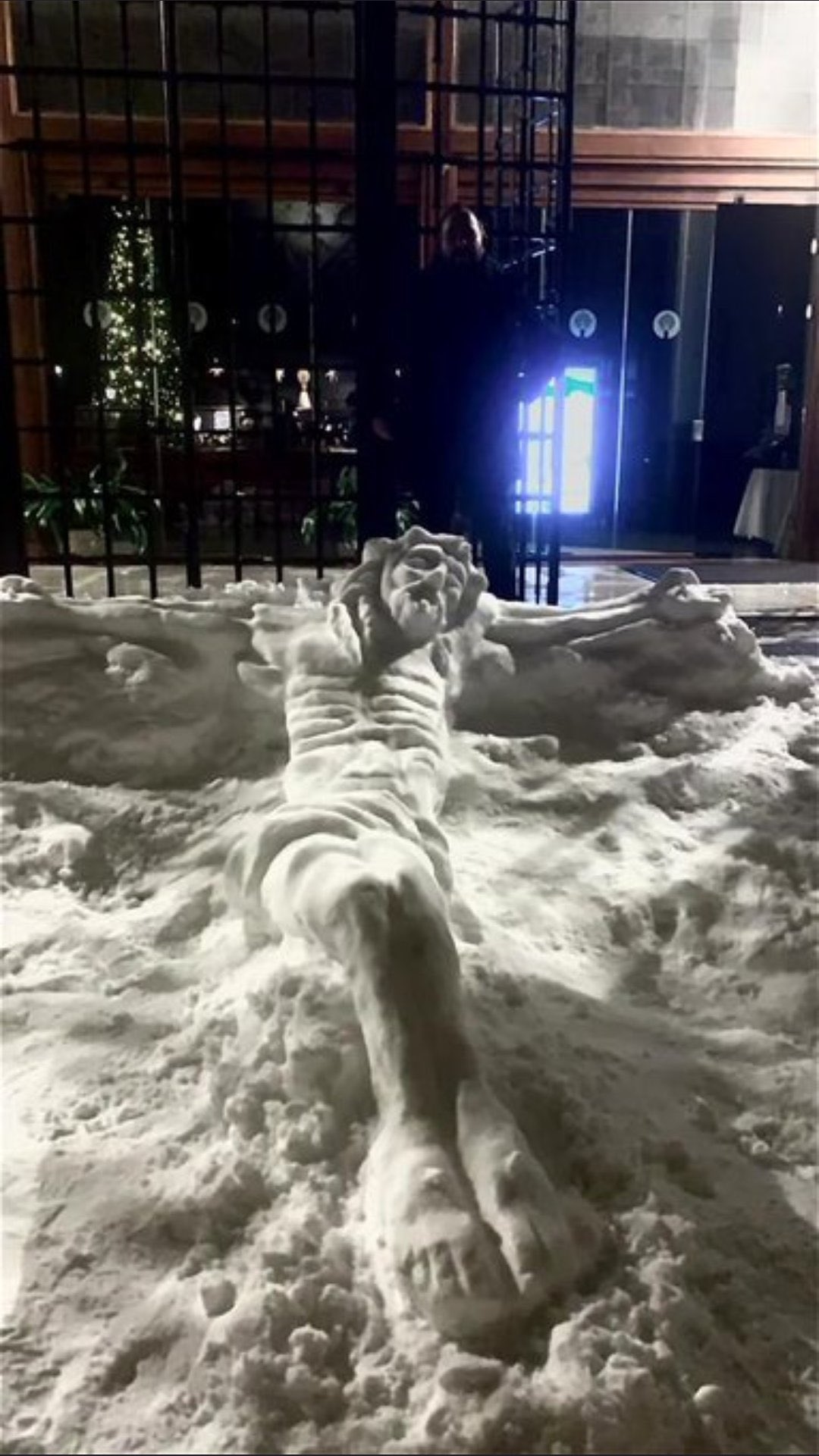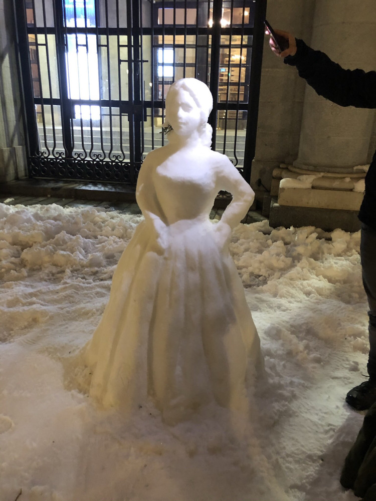 Также на улицах города появилось снежное распятие Иисуса, персонаж картины "Крик" Эдварда Мунка, героиня оперы Джузеппе Верди "Травиата" и танцующие влюбленные.