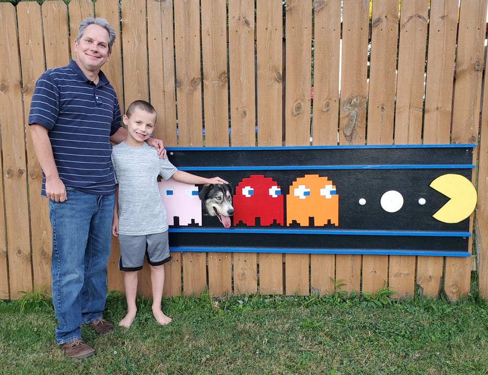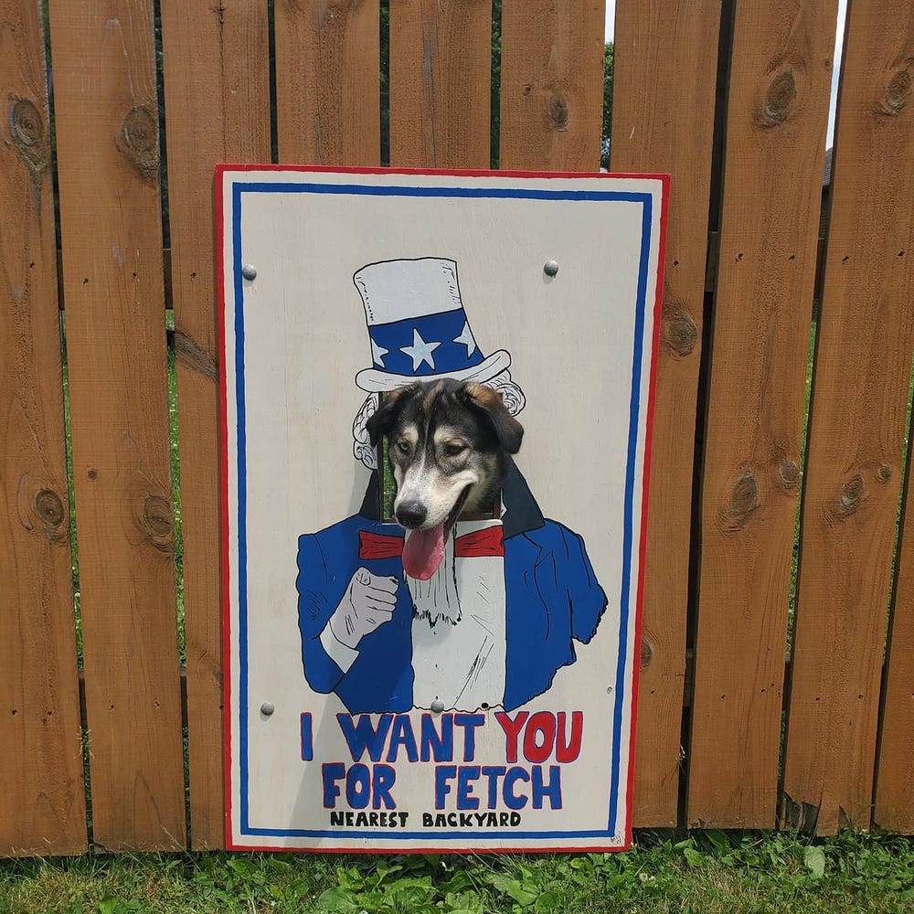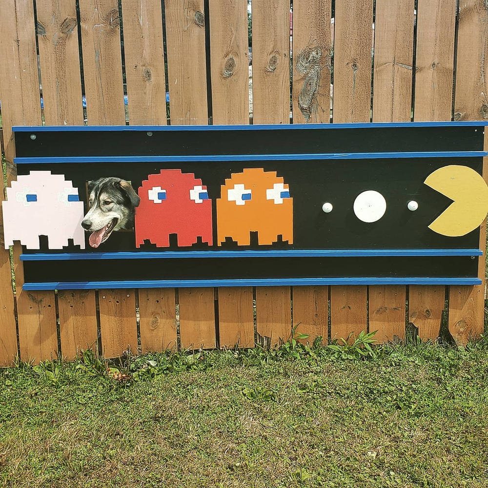Брайан Стэнли проделал в своем заборе дыру, чтобы позволить любопытному псу Бургеру следить за происходящим на улице. Собаке так понравился обзорный пункт, что он стал часами просиживать у забора, высунув голову наружу. Остроумный хозяин не придумали ничего лучше, чем превратить деревянную ограду в подобие тантамарески - стенда для фотосъемки с отверстием для лица.