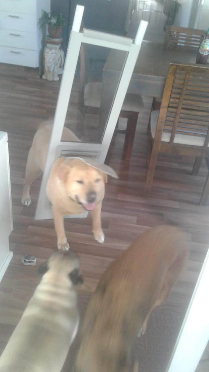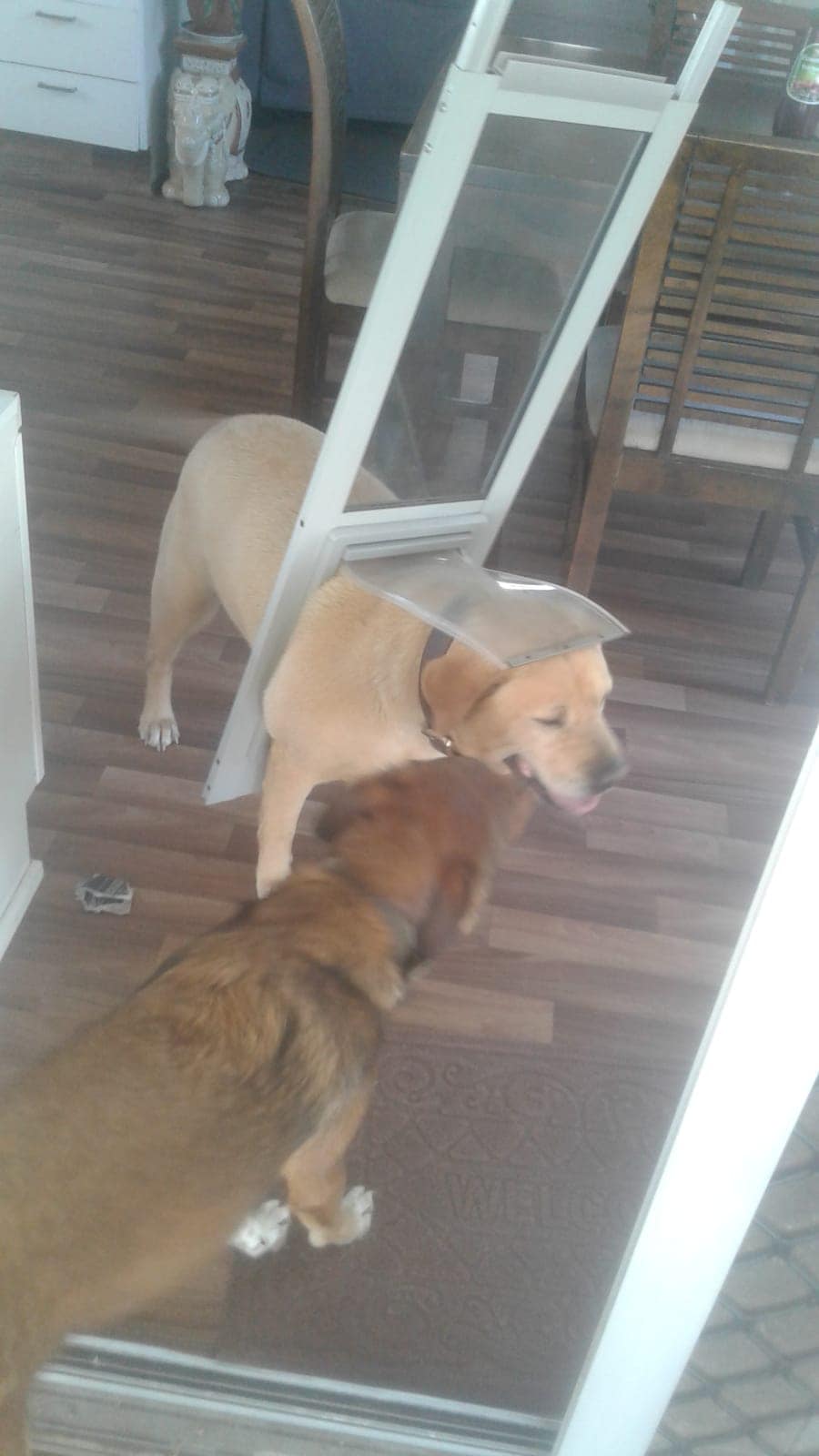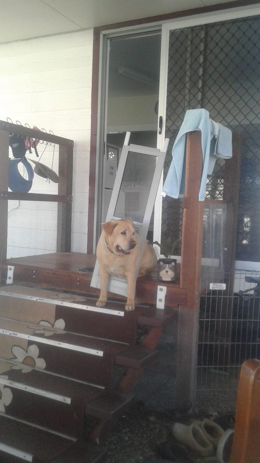 Лабрадор по кличке Дракс с возрастом немного располнел, но в душе остался все таким же озорным щенком. Однажды он пытался пройти через отверстие для домашних животных, но застрял. В попытке освободиться, питомец выломал дверь. Теперь беднягу ждет диета.